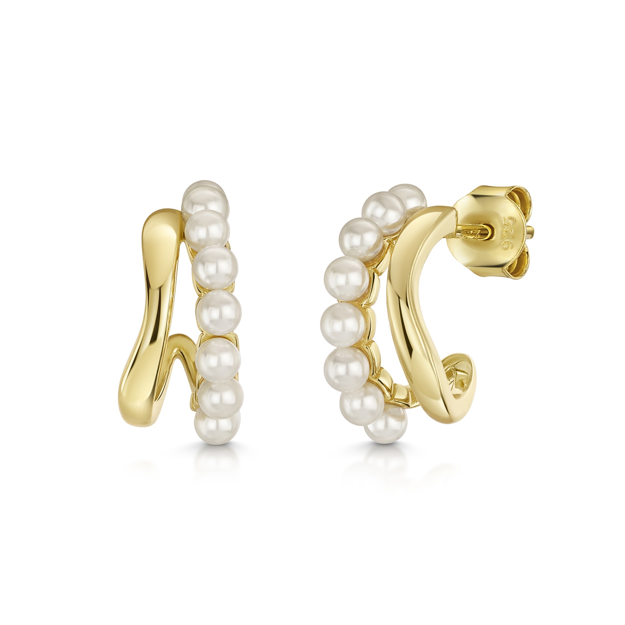 18ct Yellow Gold Vermeil Double Row Pearl Hoop Earrings