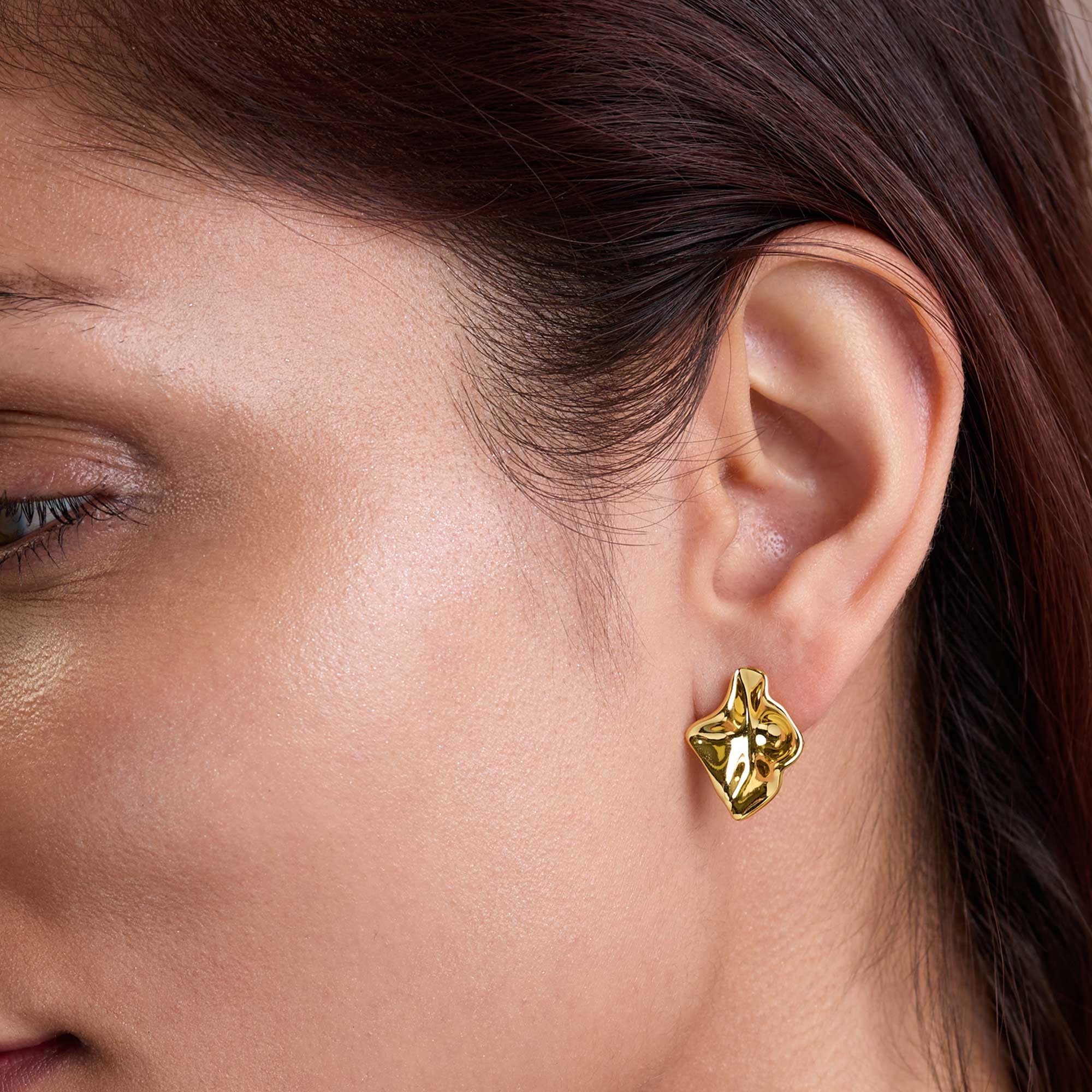 18ct Yellow Gold Vermeil Hammered Stud Earrings