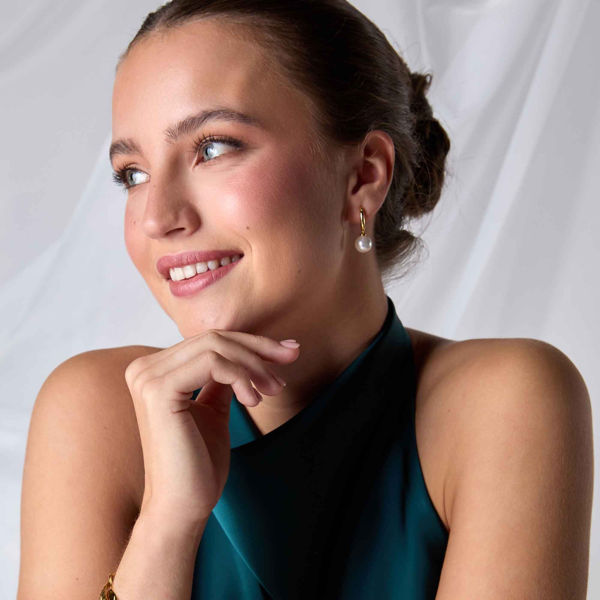 18ct Yellow Gold Vermeil Pearl Drop Hoop Earrings