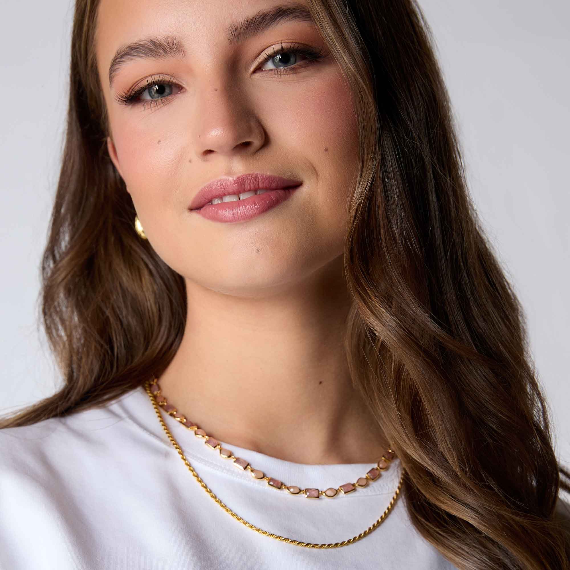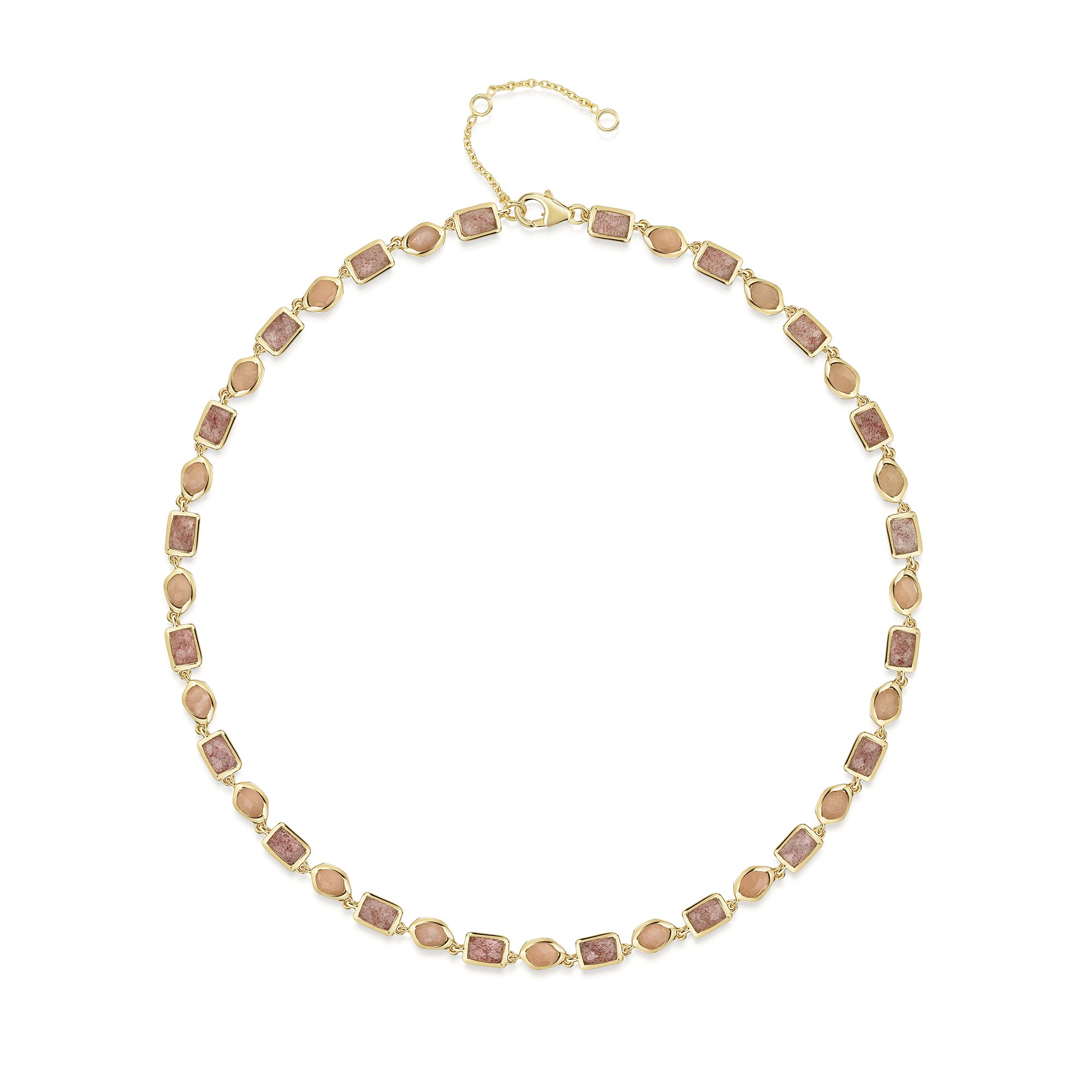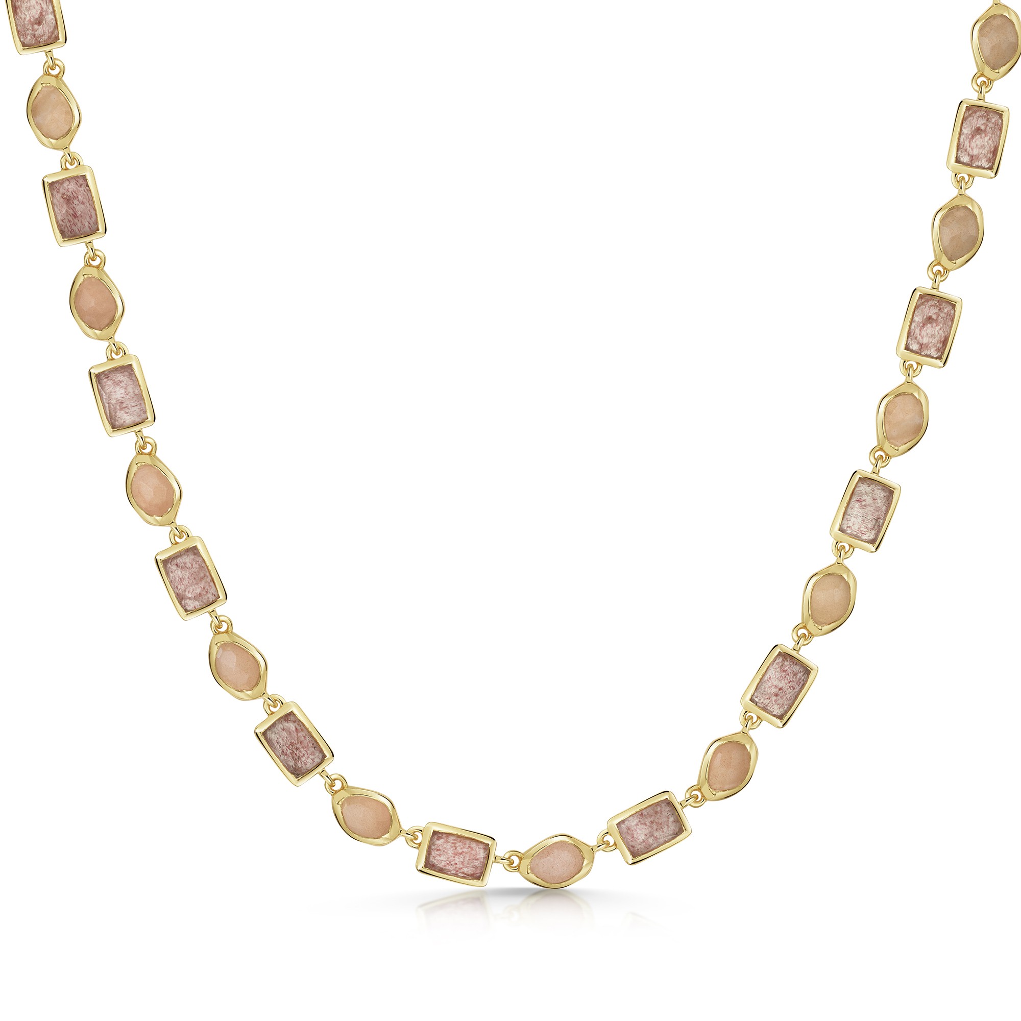 18ct Gold Vermeil Strawberry Quartz & Peach Moonstone Necklet