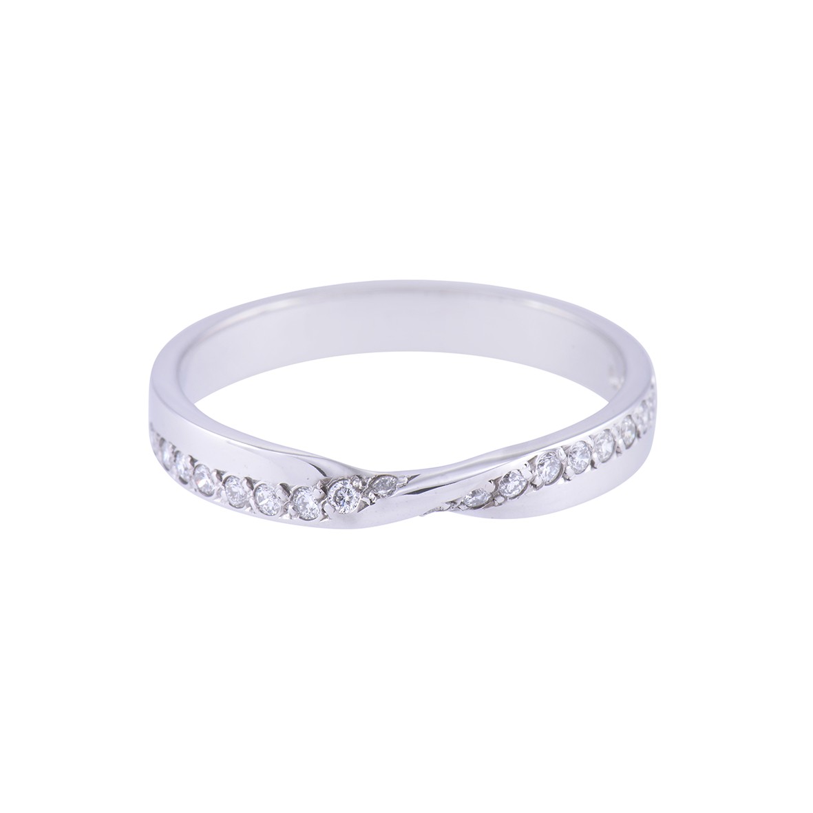 A beautifully feminine design, this 18ct white gold half diamond eternity ring is a wonderful symbol of your commitment and eternal love for another. A wonderful design, a row of round brilliant cut diamonds, with a total carat weight of 0.15, sit in a cross over designed ring that is a beautiful way of celebrating an anniversary, mark a special occassion os somply to say "I love you".