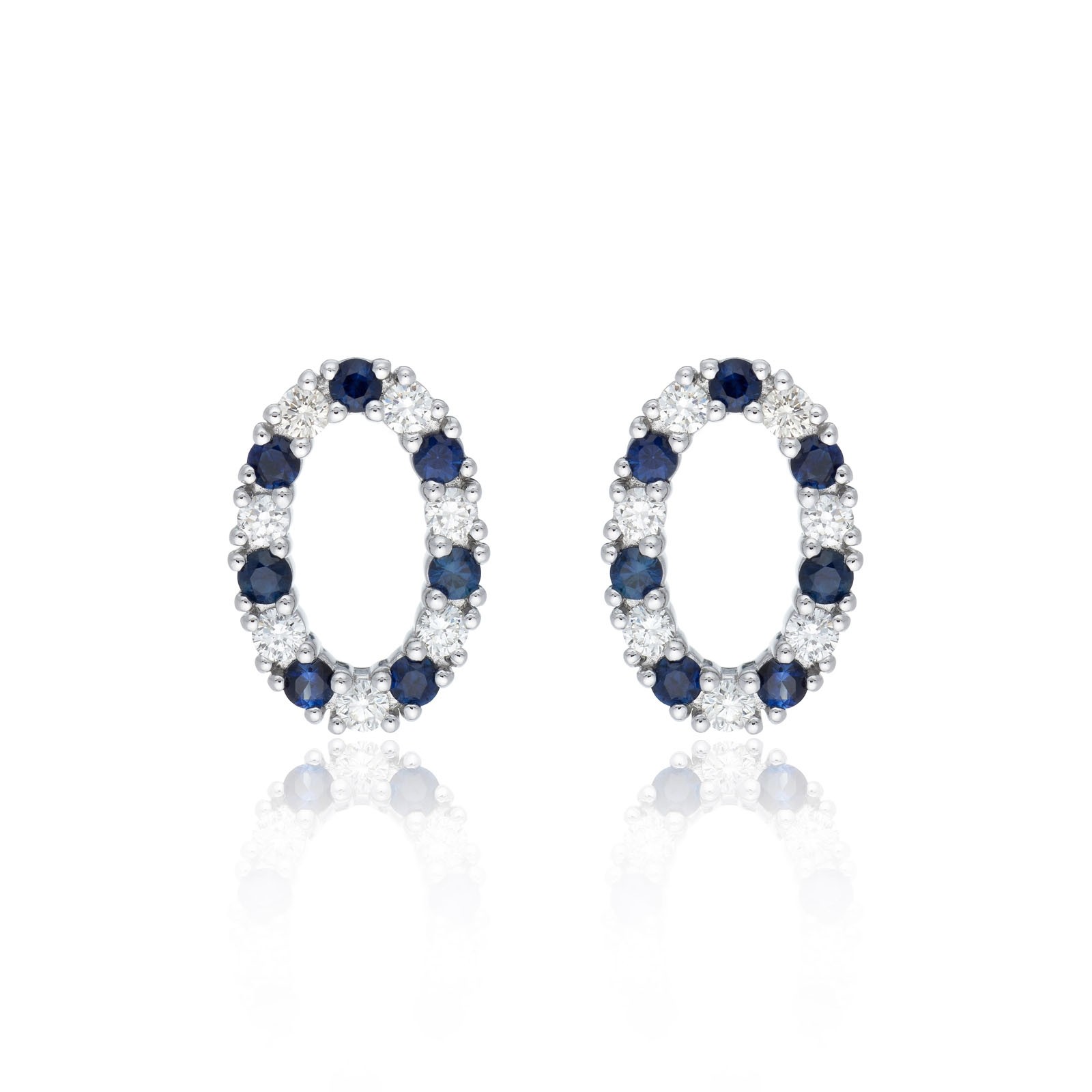 18ct White Gold 0.42ct Sapphire and 0.40ct Round Brilliant Diamond Oval Earrings