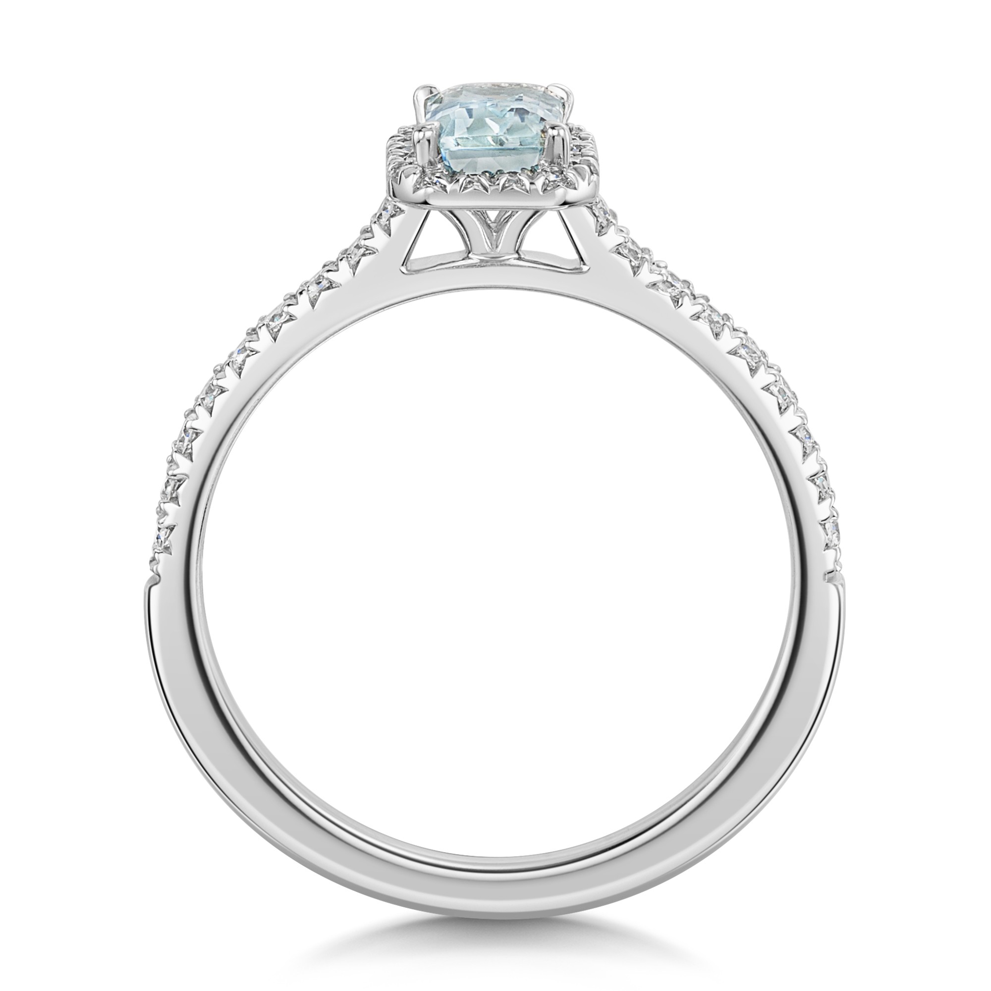 9ct White Gold 0.75ct Emerald Aquamarine & Diamond Halo Ring
