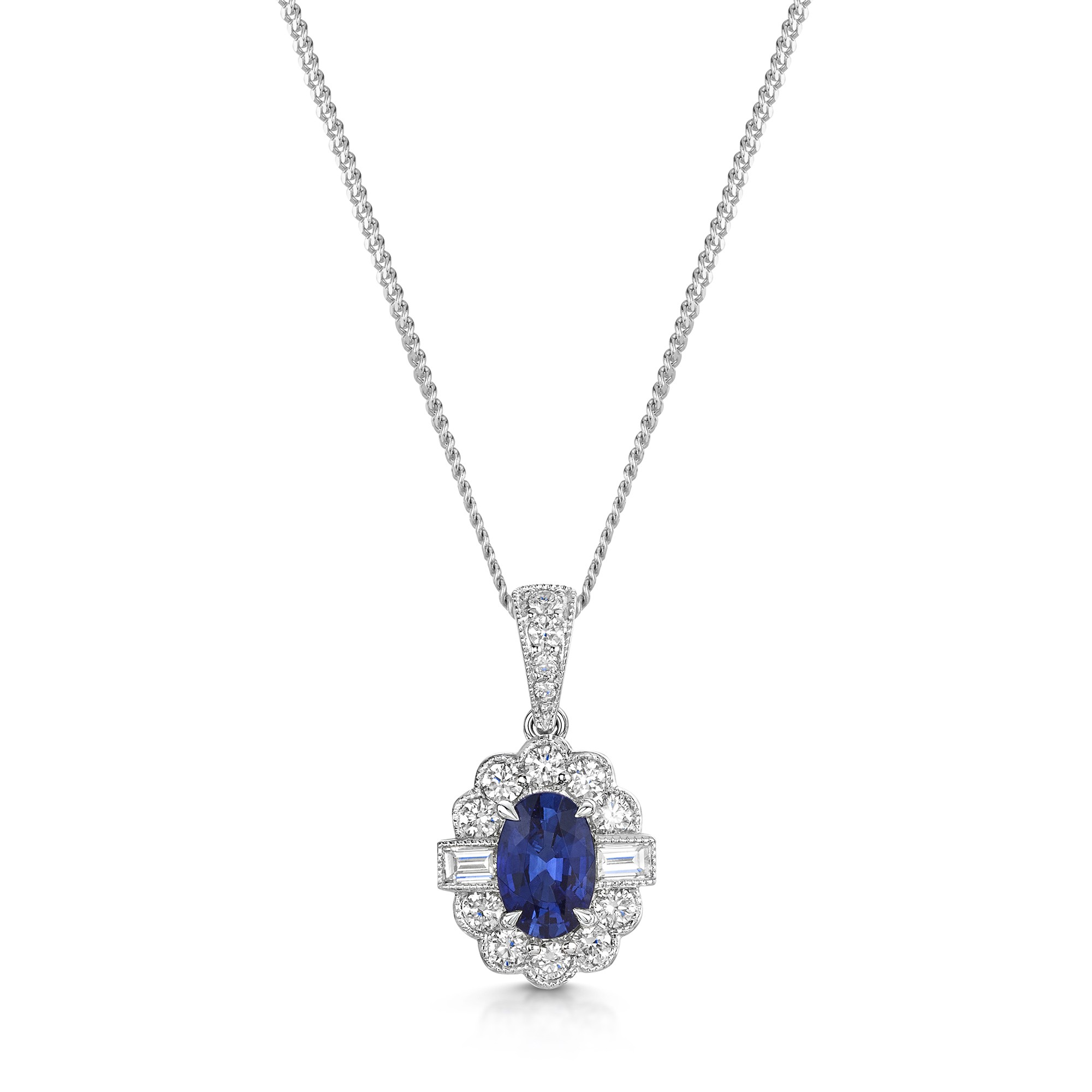 18ct White Gold 1.47ct Oval Cut Blue Sapphire & 2.04ct Mixed Cut Diamond Halo Pendant