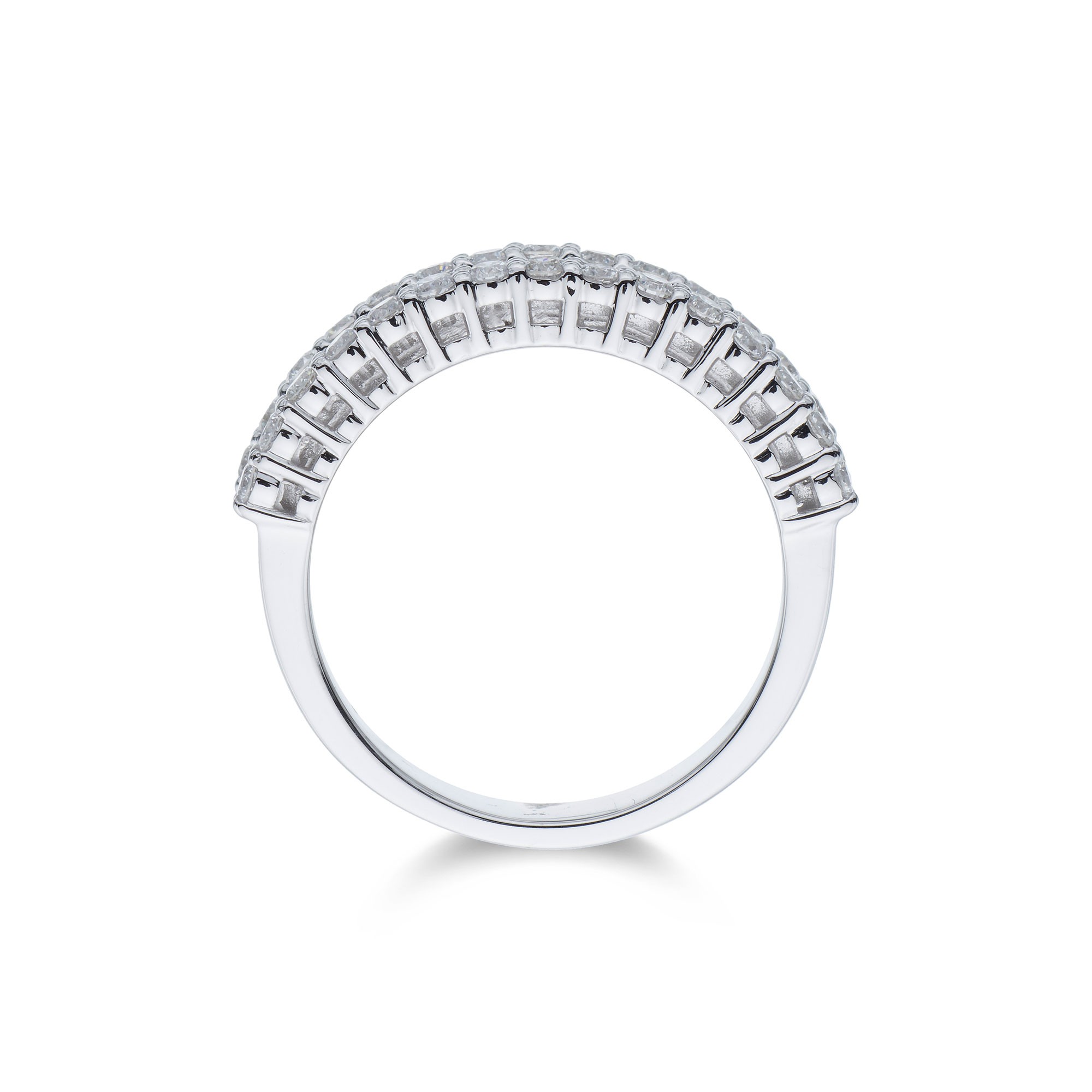 Whether to celebrate an anniversary, mark an important milestone or simply say "I love you", this 18ct white gold diamond fancy band ring is a wonderful choice. A modern and contempory design; a dazzling row of round brilliant cut diamonds sit on either side of a row of baguette cut diamonds. With a total diamond carat weight of 1.10, this ring is is a wonderful token of your everlasting bond, eternal love and commitment for one another.
