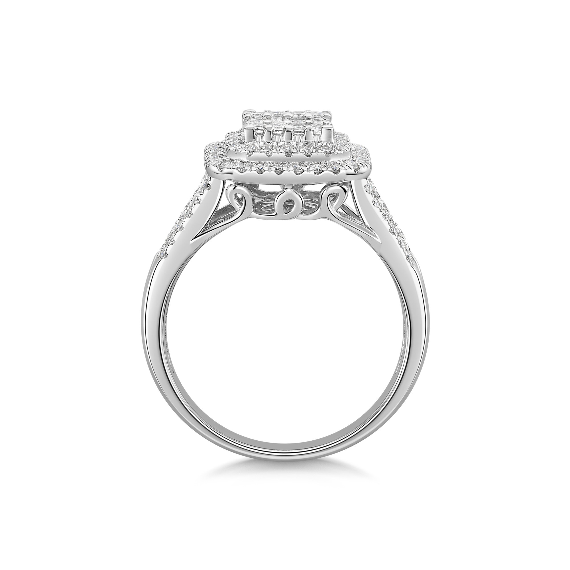 18ct White Gold Baguette & Round Brilliant Cut 1.00ct Diamond Cluster Ring