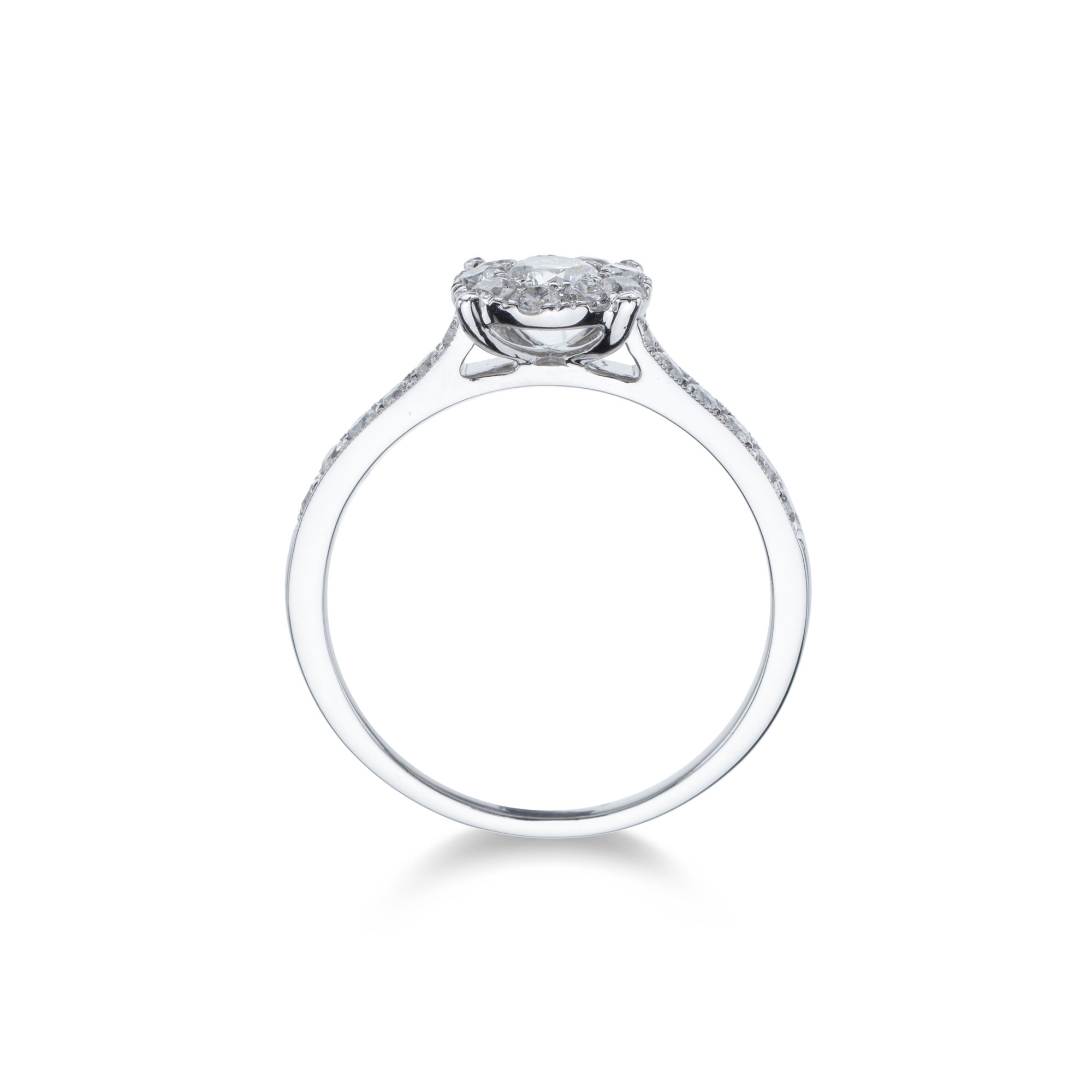 A beautifully captivating design, this 18ct white gold diamond cluster engagement ring will have you loved on falling head over heels. A cluster of round brilliant diamonds, with a total carat weight of 0.70, elegant sits on diamond shoulders in a dazzling design. Diamond Information: Cut- Round Brilliant, Colour - G-H, Clarity - SI1-SI2, Carat Weight - 0.70ct.