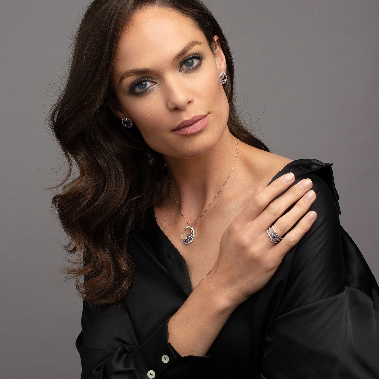 Add a touch of opulence to your look with these 18ct White Gold Brilliant Cut Diamond 0.52ct and Sapphire 0.76ct Earrings from Chisholm Hunter. Smooth white gold has been expertly crafted into a circle design with sapphire and diamonds within. These earrings will look great styled for a special occasion and can be enhanced by pairing with the matching items.