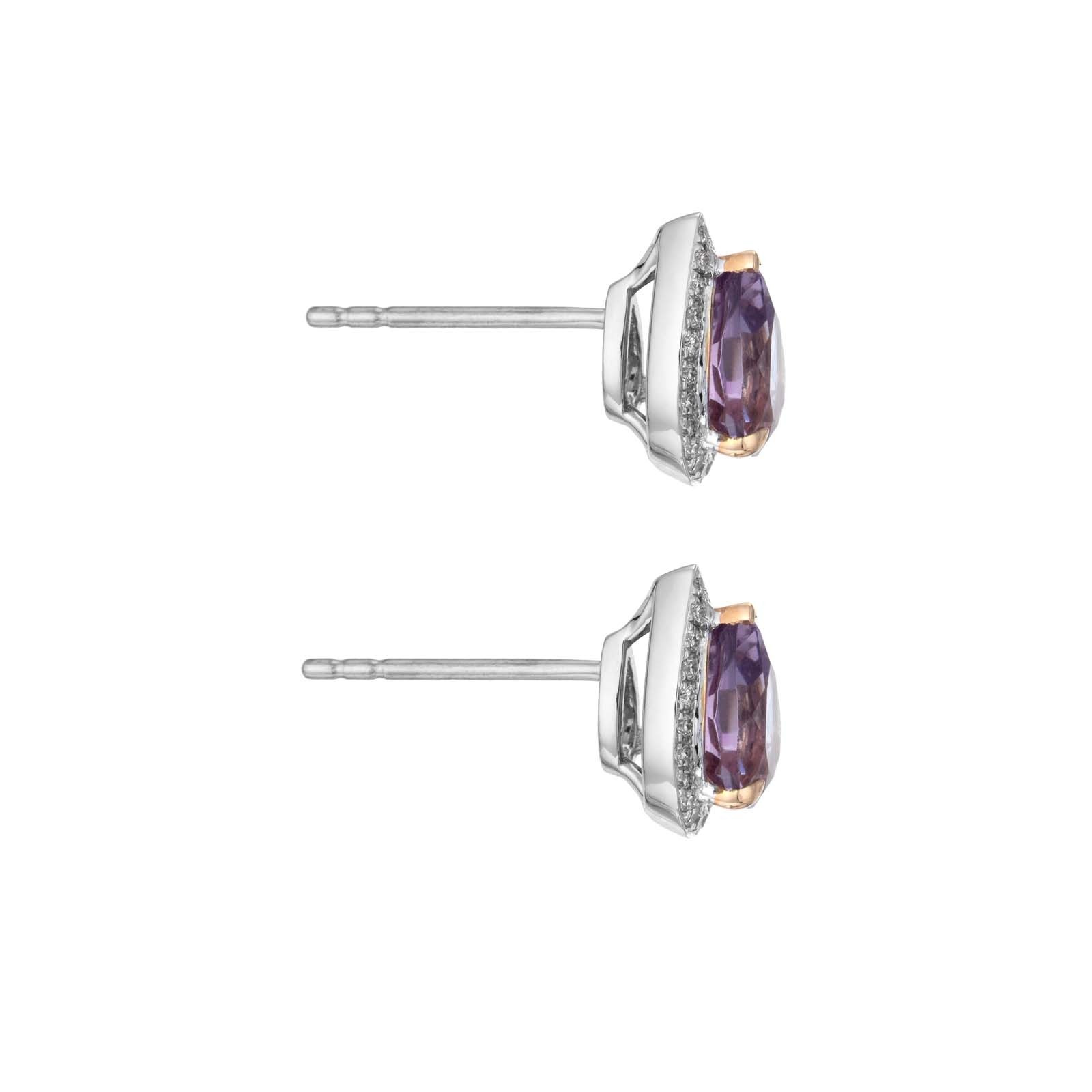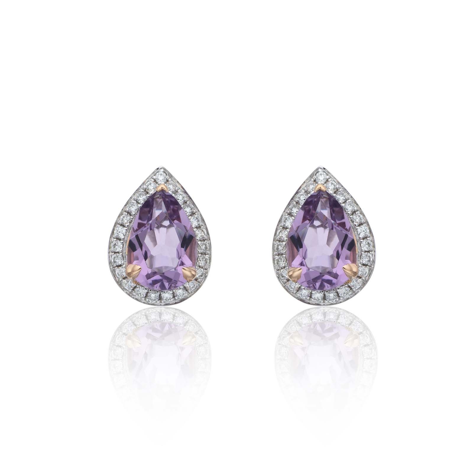 A perfect choice for those born in February, these 18ct White Gold Amethyst 1.24ct and Diamond 0.13ct Halo Earrings will fit effortlessly into any jewellery collection. Each earring hosts a radiant pear-cut amethyst in a three-claw setting which is surrounded by a diamond halo illuminating the white gold earring. These stud earrings look divine when paired with the matching amethyst pieces.