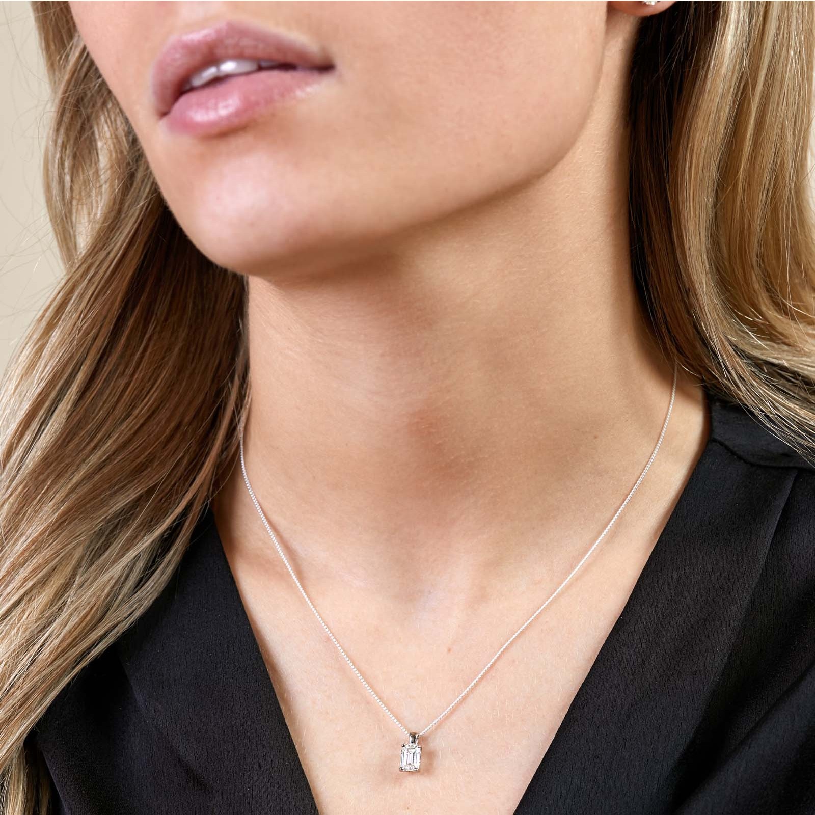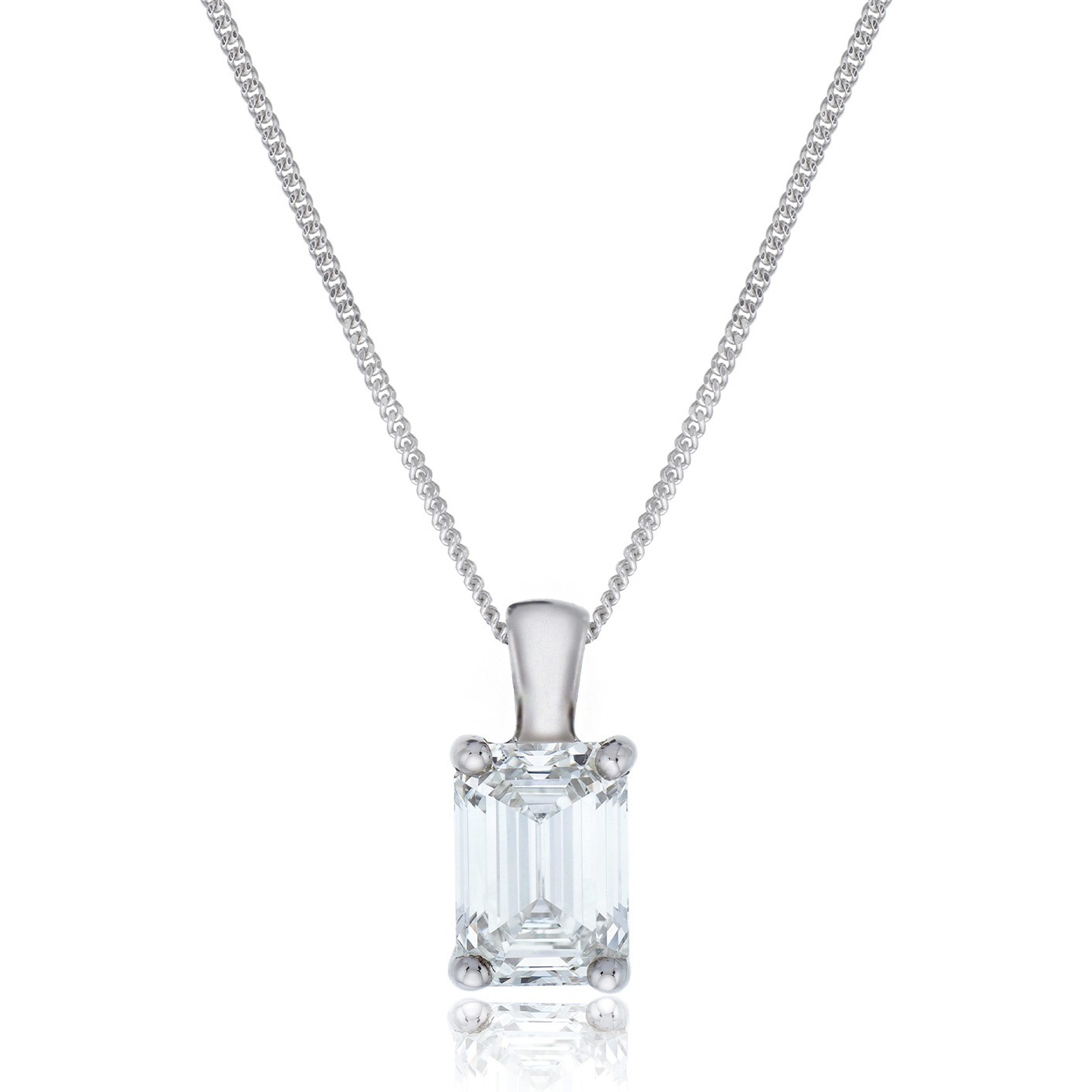 18ct White Gold Emerald Cut 1.00ct Lab Grown Diamond Pendant