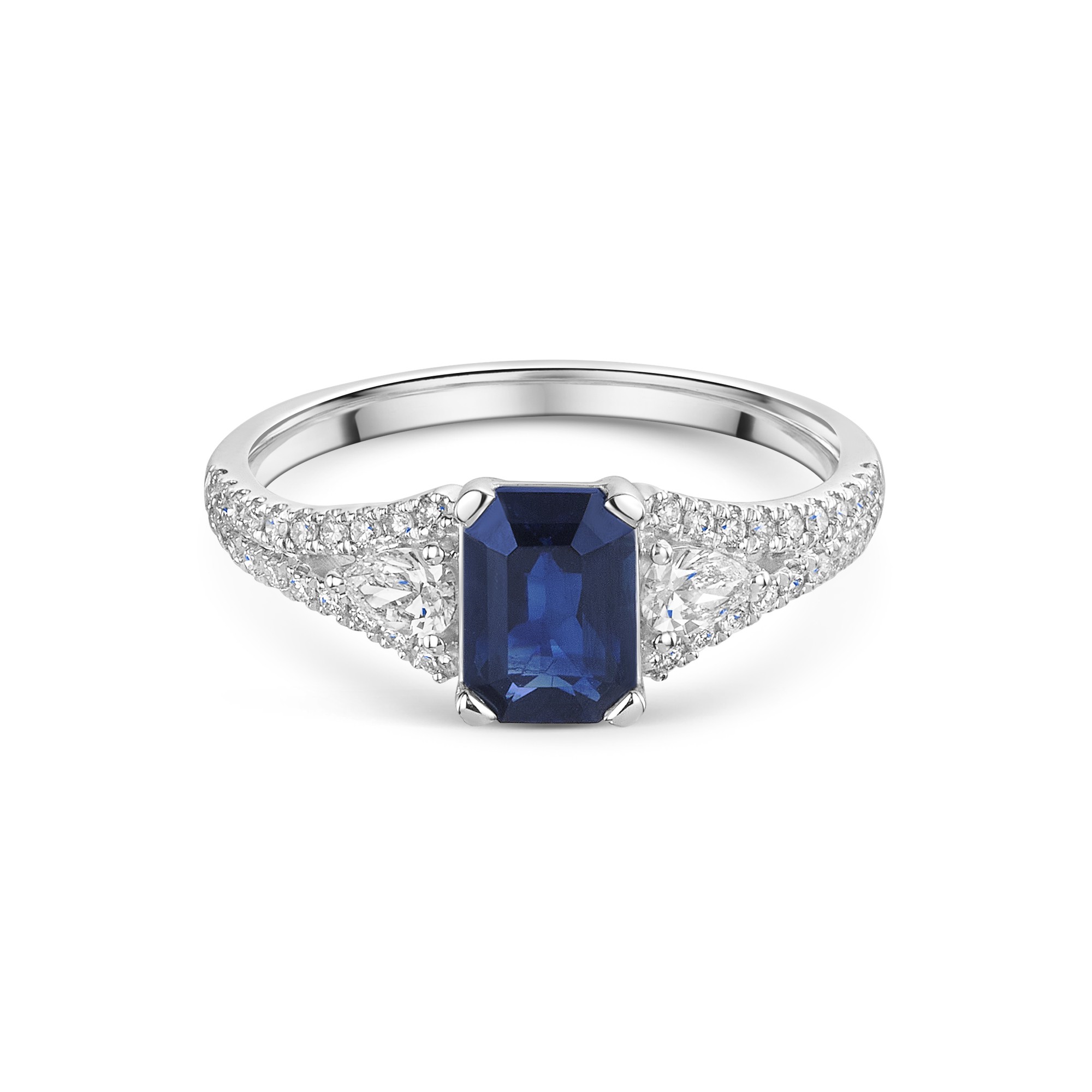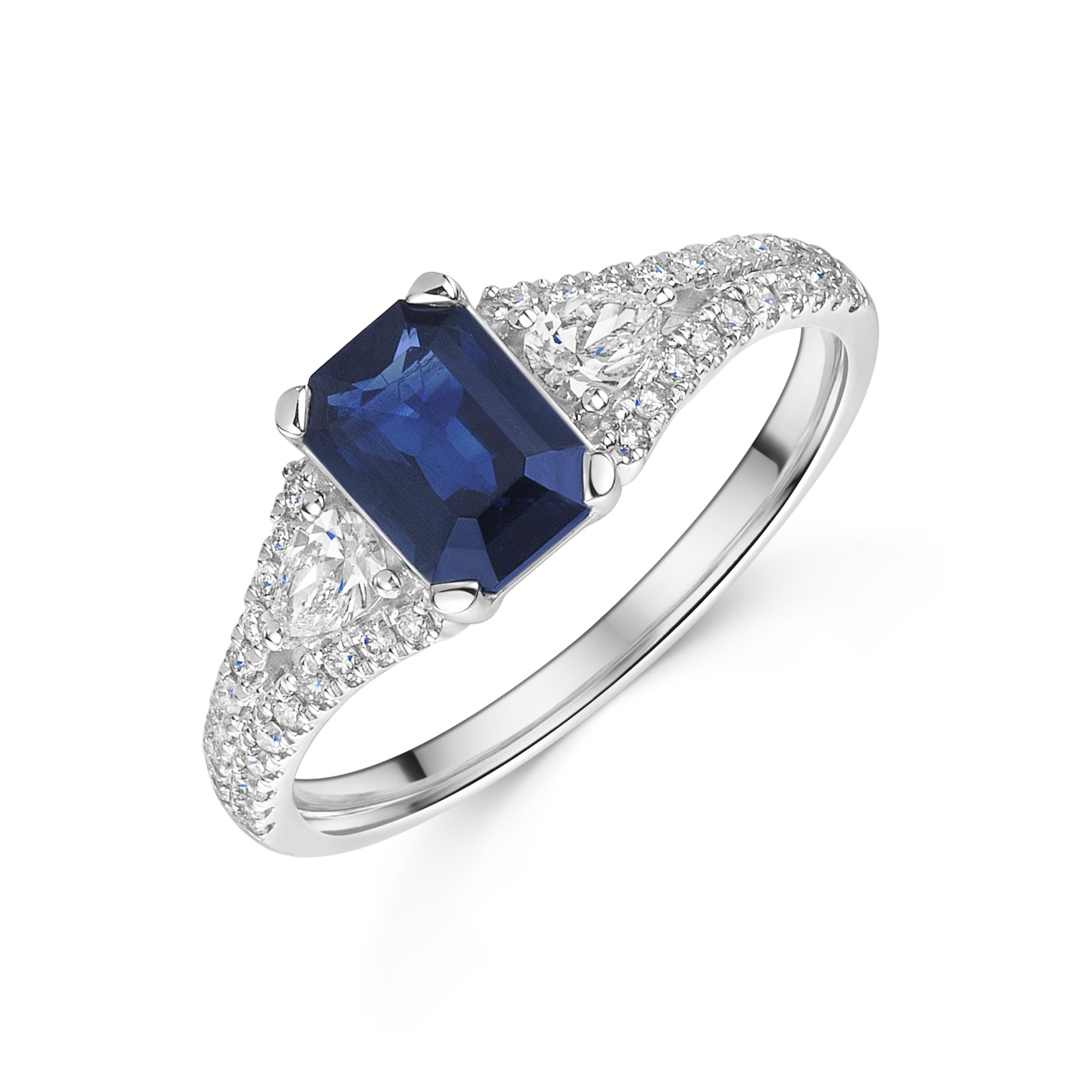 18ct White Gold Octagonal Cut 1.20ct Sapphire and Diamond Three Stone Ring