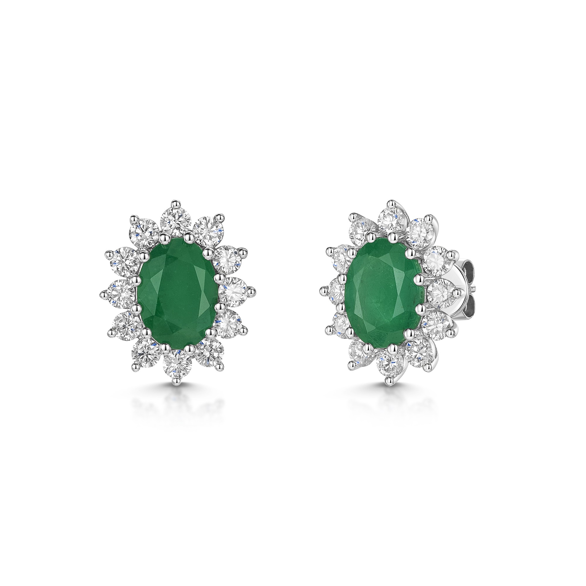 18ct White Gold Oval 2.26ct Emerald and 0.94ct Diamond Earrings