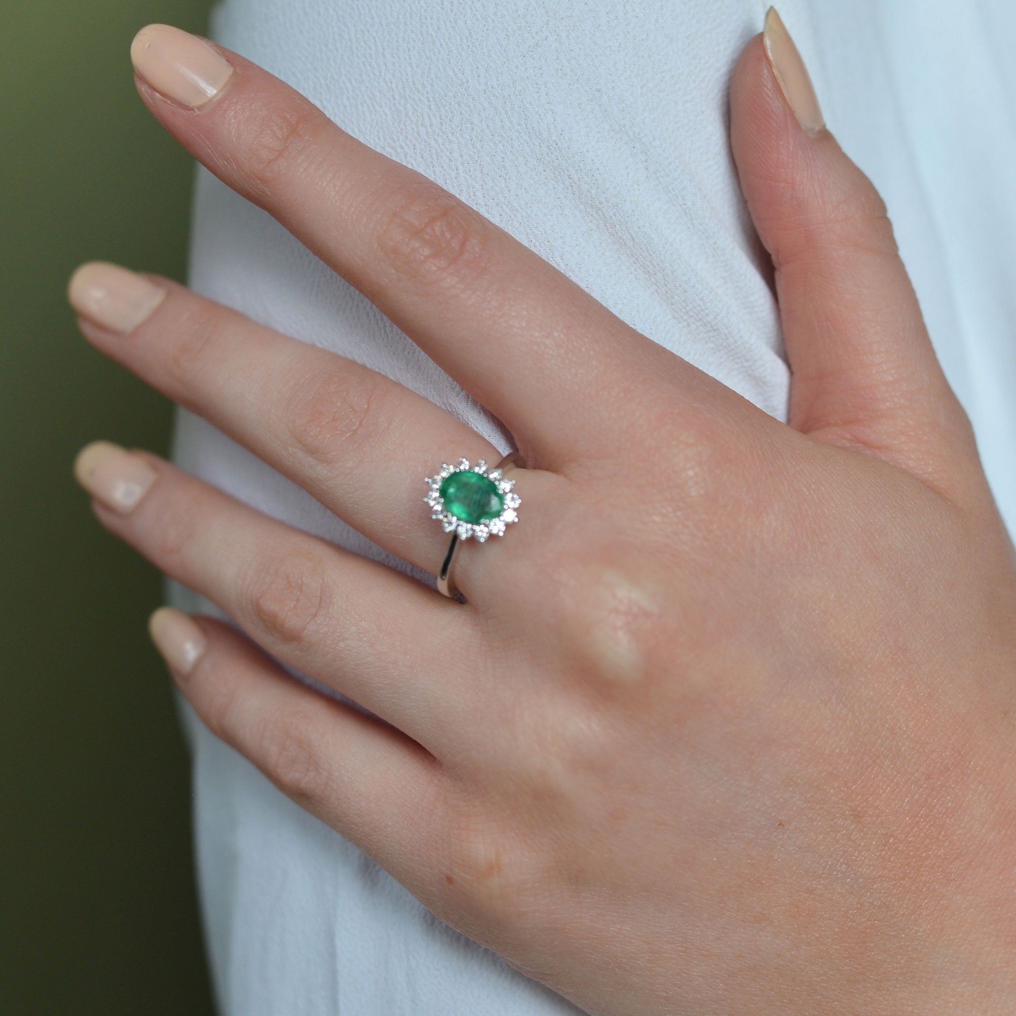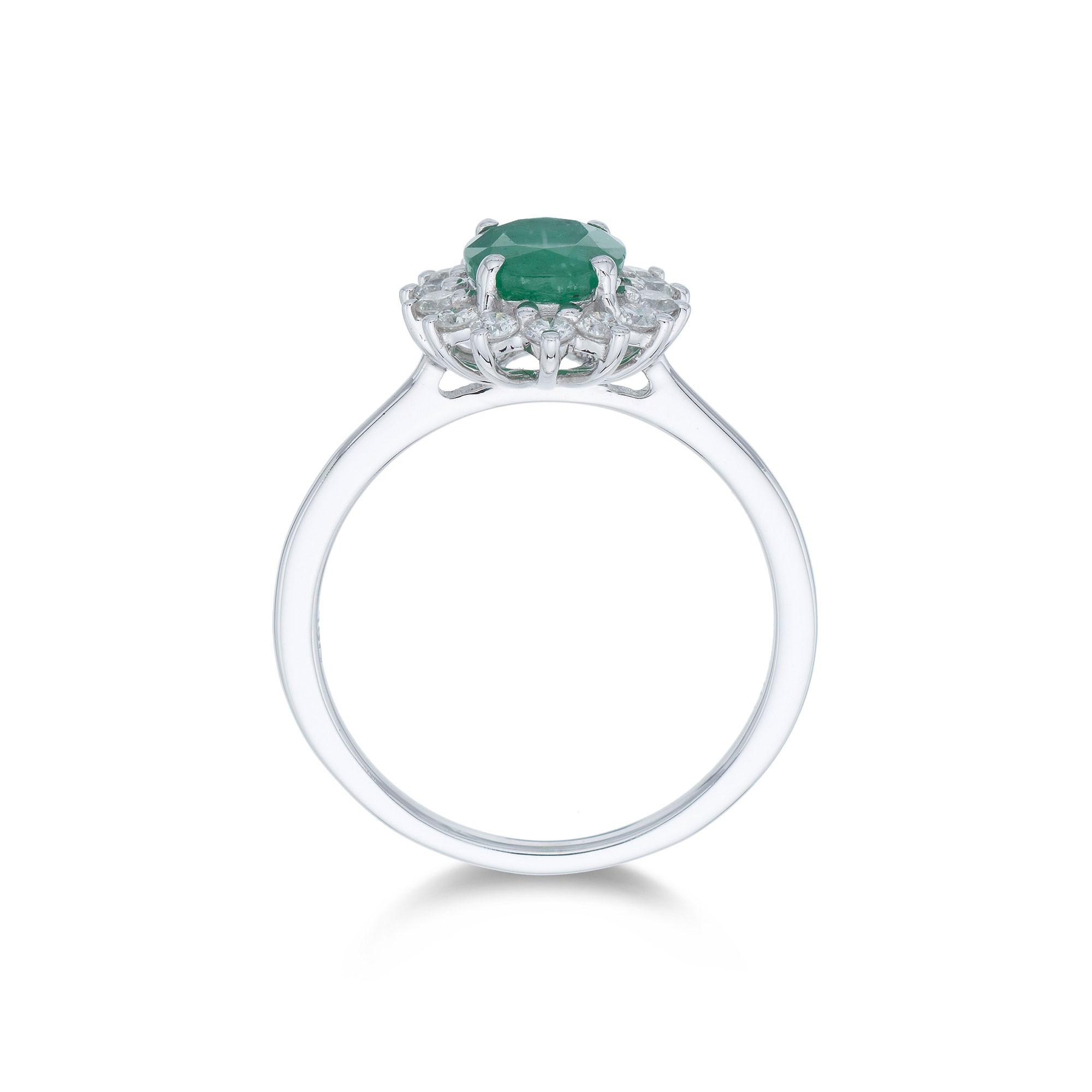 18ct White Gold Oval Cut Emerald and Brilliant Cut Diamond 1.65ct Cluster Ring