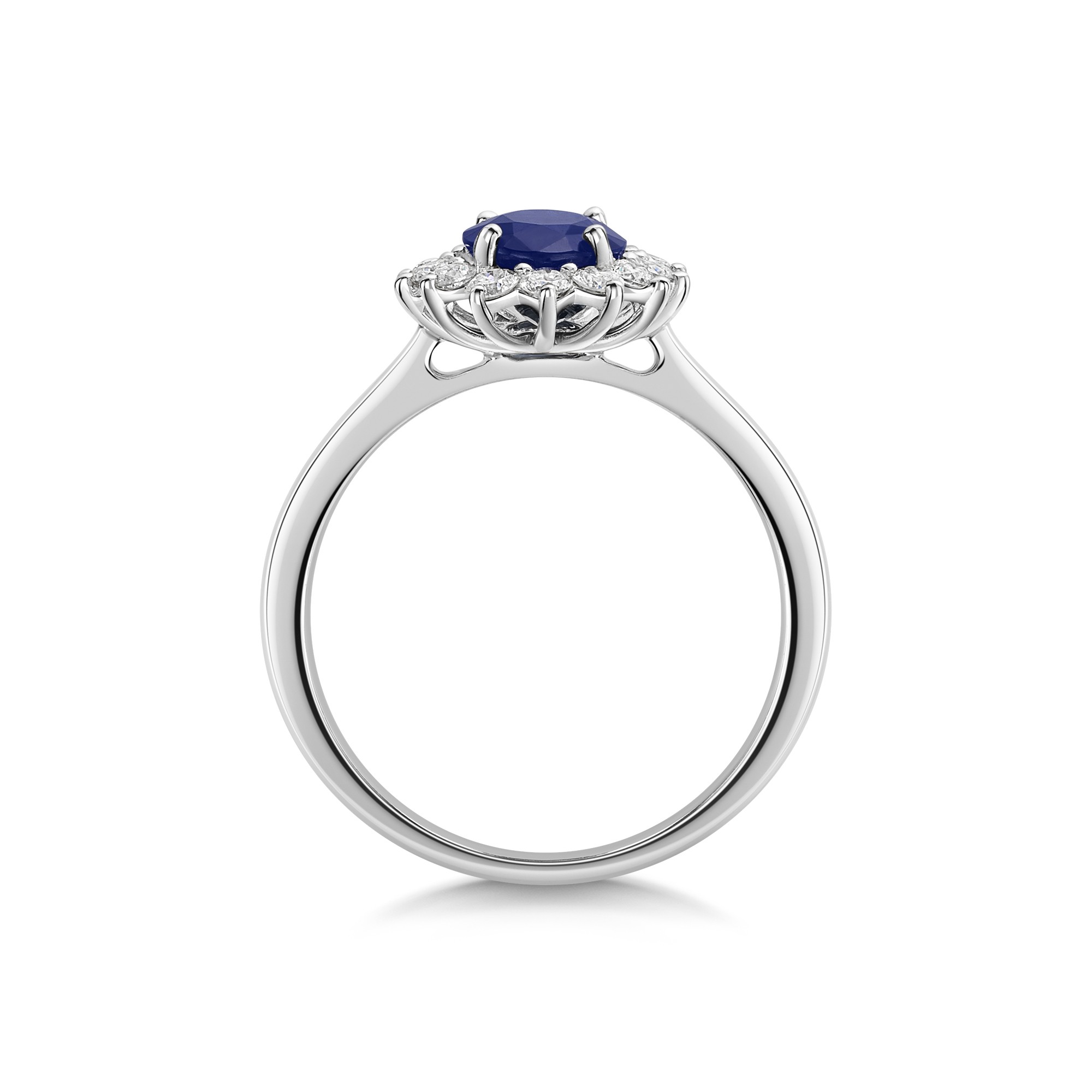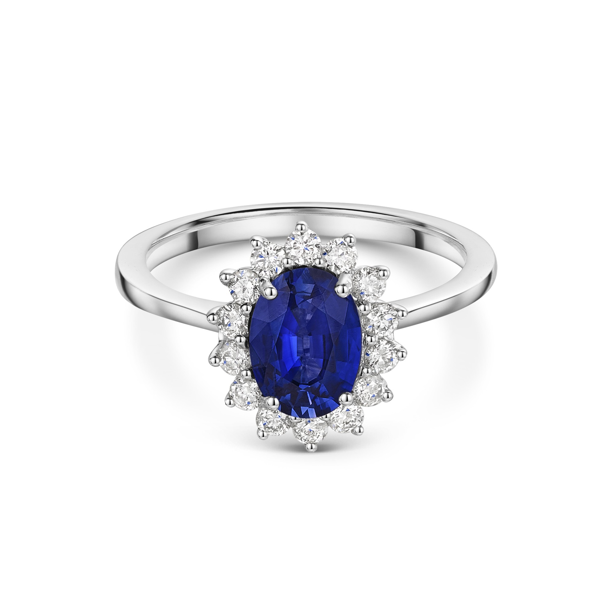18ct White Gold Oval Cut Sapphire and Round Brilliant Diamond Cluster Ring