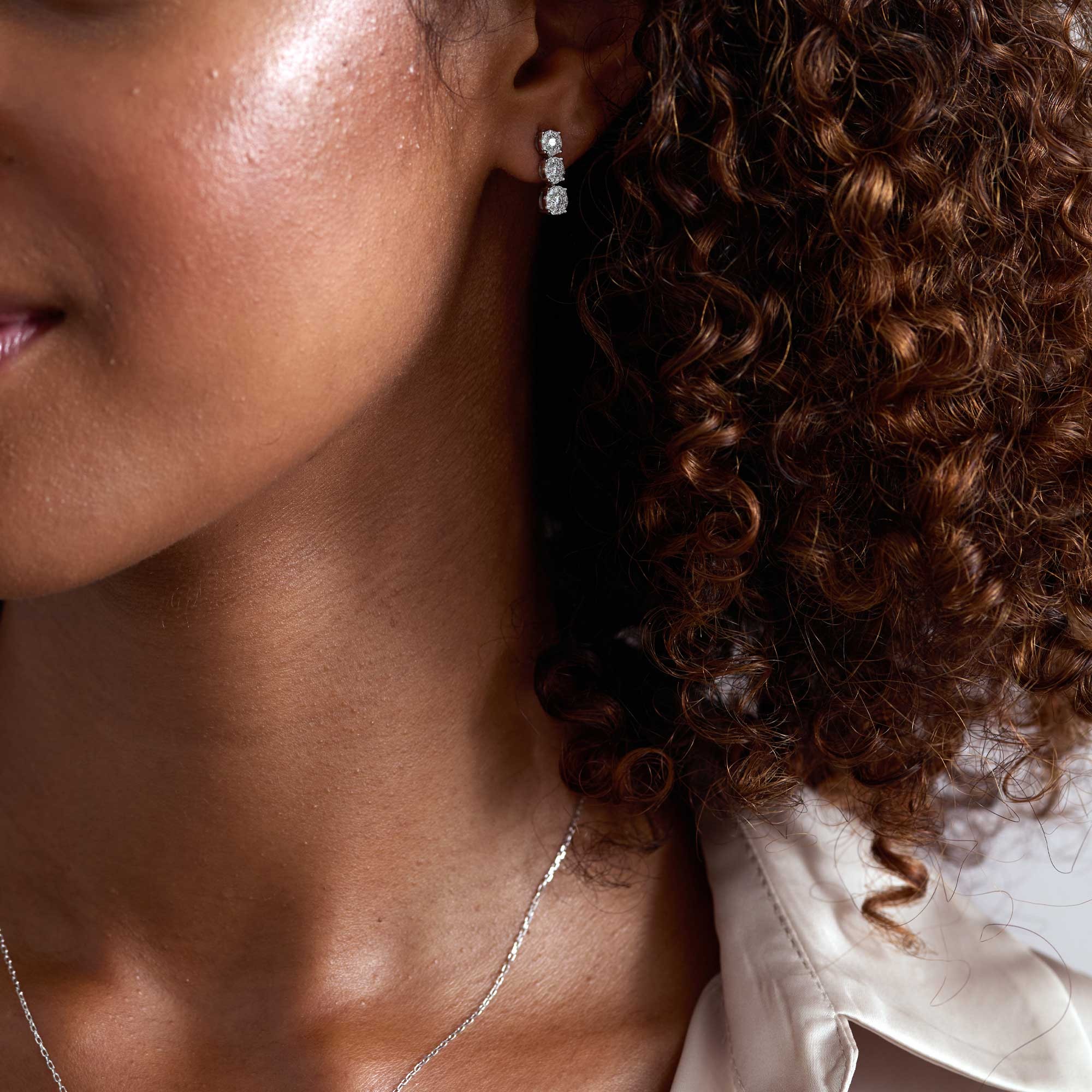 18ct White Gold Round Brilliant 0.65ct Diamond Triple Cluster Drop Earrings