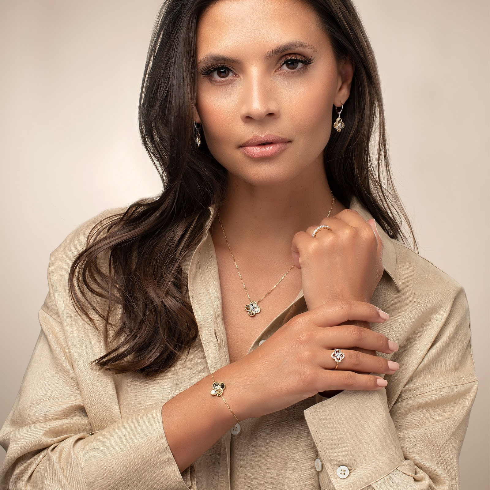 18ct Yellow Gold 0.20ct Round Brilliant Textured Flower Diamond Bracelet