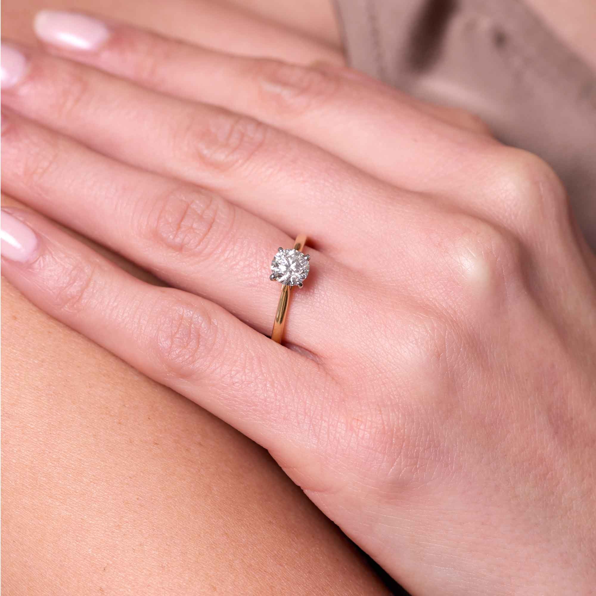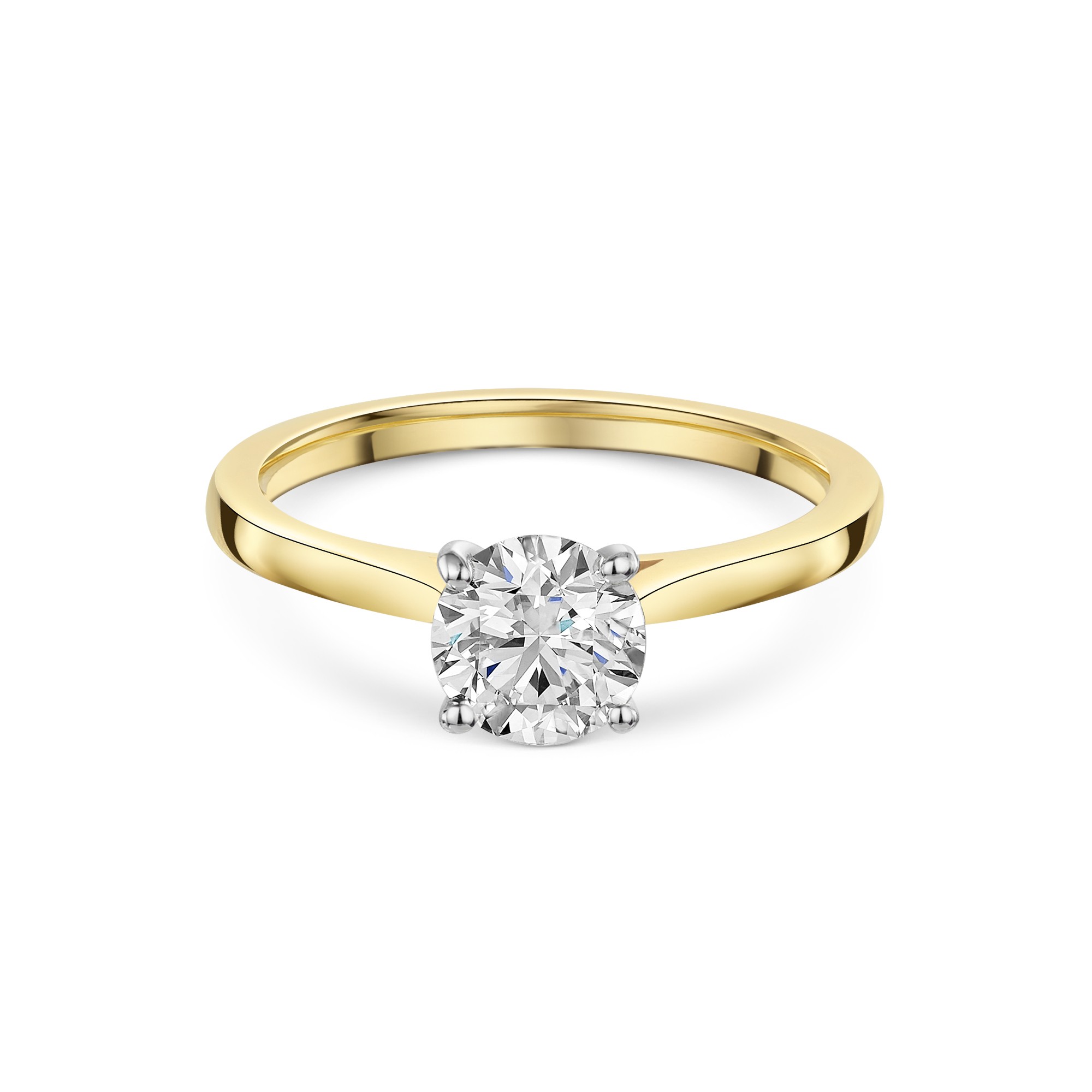 Made in solid 18ct yellow gold, the polished band adds a warm tone that complements the clear diamond. The classic solitaire silhouette suits proposals, anniversaries and everyday style for her.