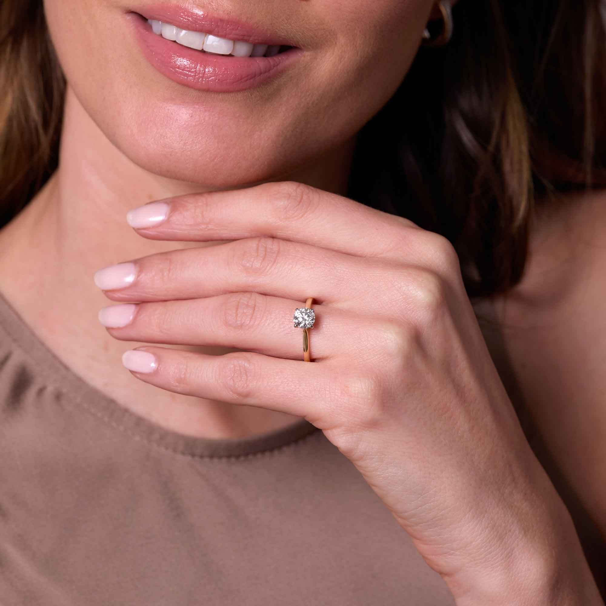 The centre diamond is 1.00 carat, H colour, SI2 clarity, delivering bright sparkle and balanced value. The petal-inspired claw setting holds the diamond securely to take in light from every angle, while staying practical for daily wear.