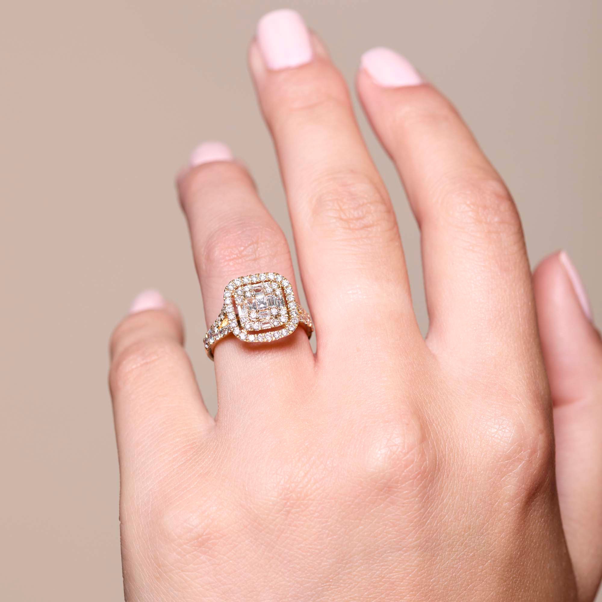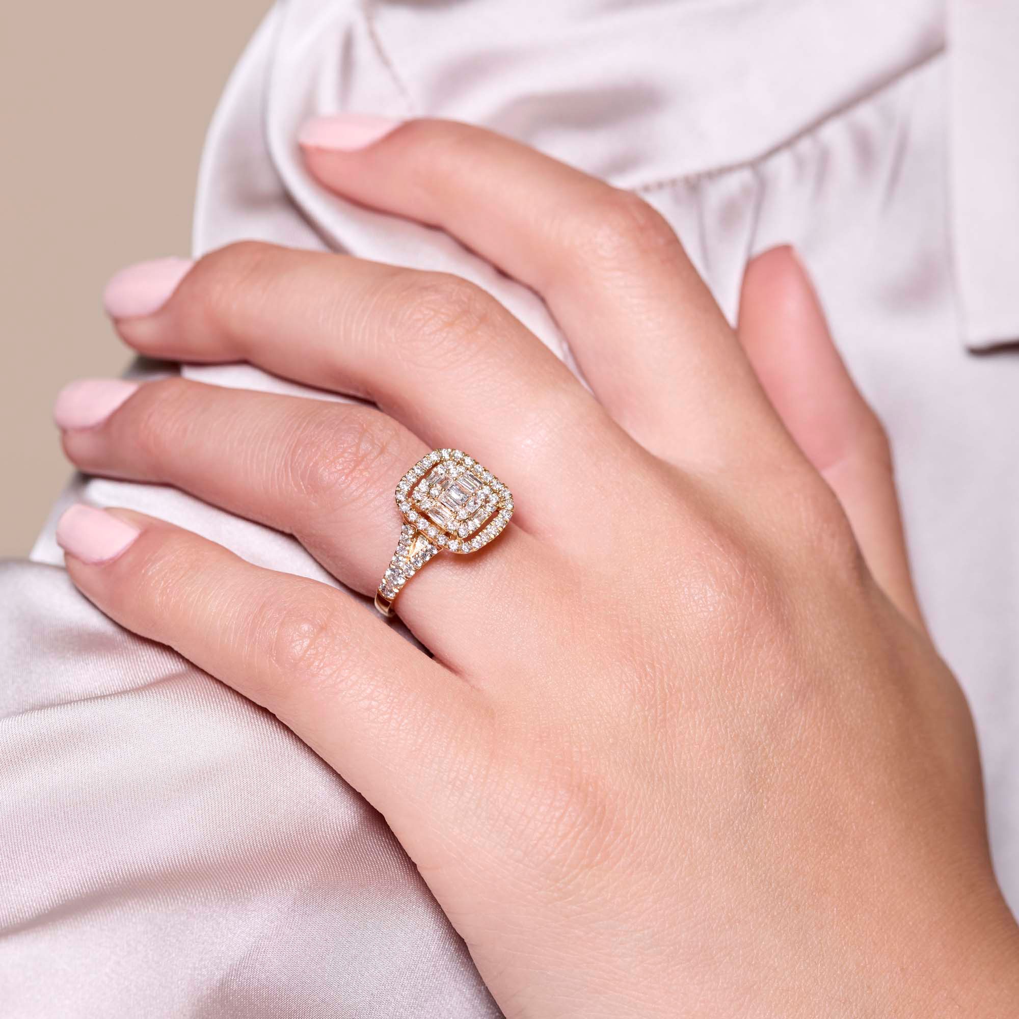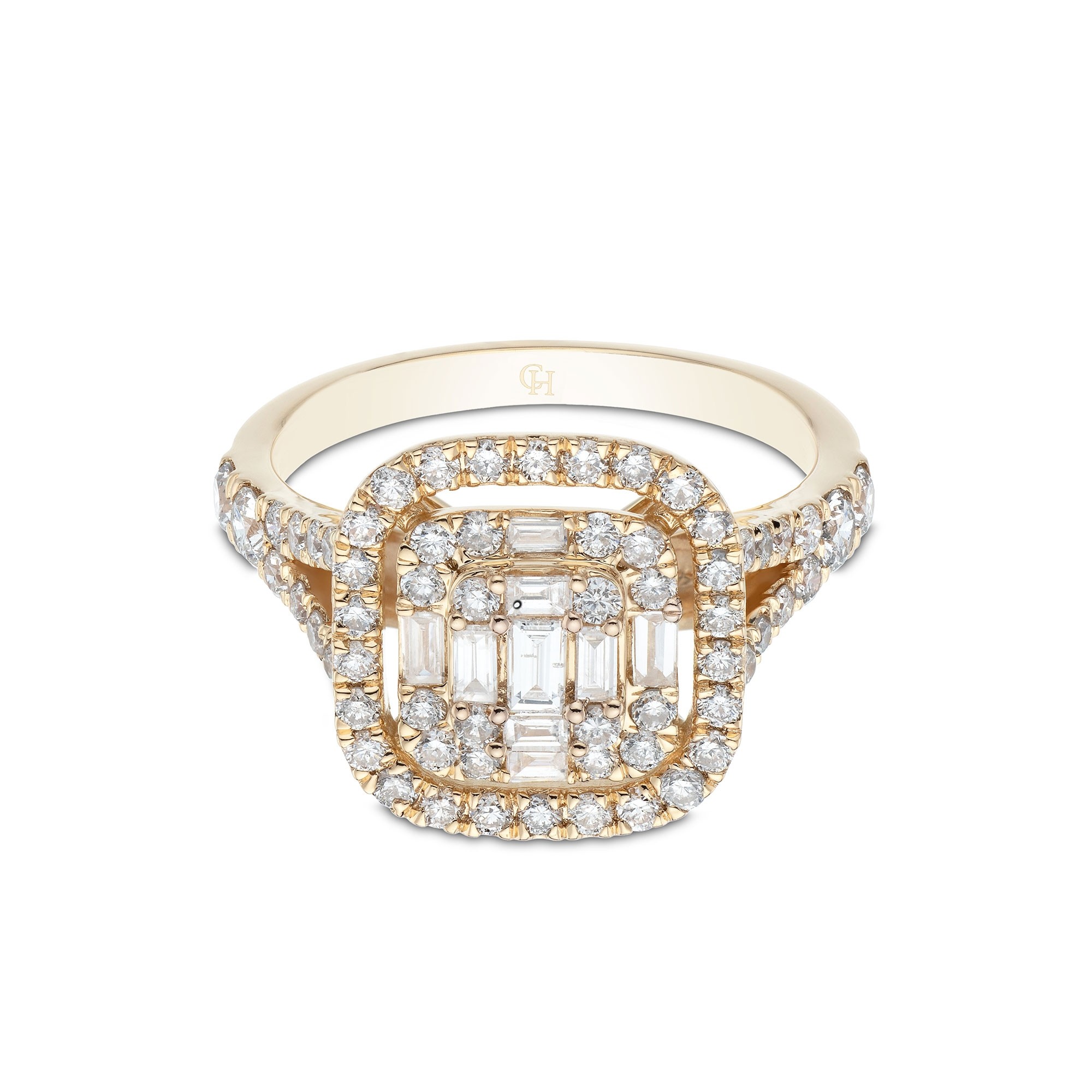 18ct Yellow Gold Baguette Cut 1.00ct Diamond Cluster Ring