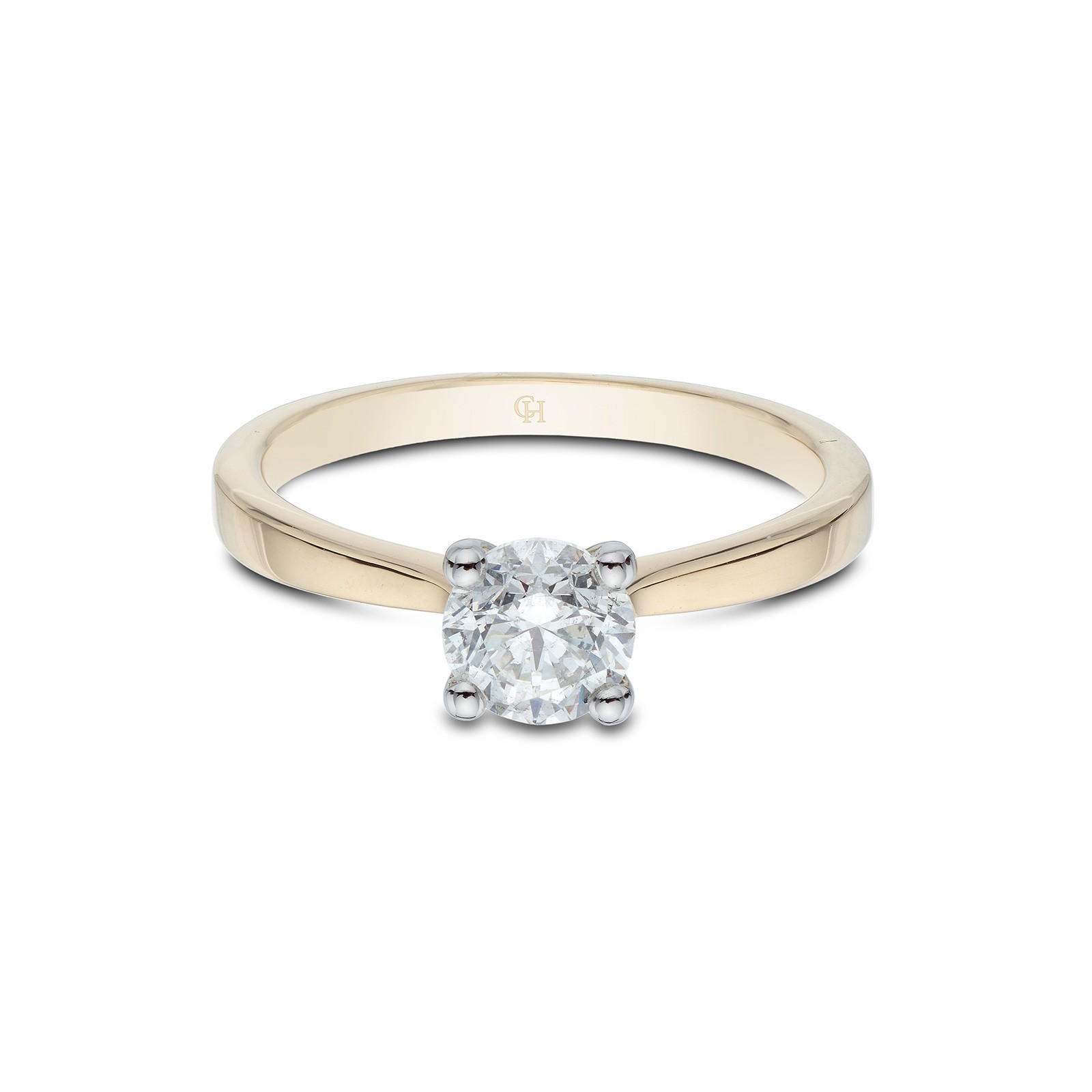 Featuring a dazzling 0.75ct round brilliant cut diamond in a beautifully modern 4 claw, low v setting, this alluring diamond ring is the perfect token of love.
