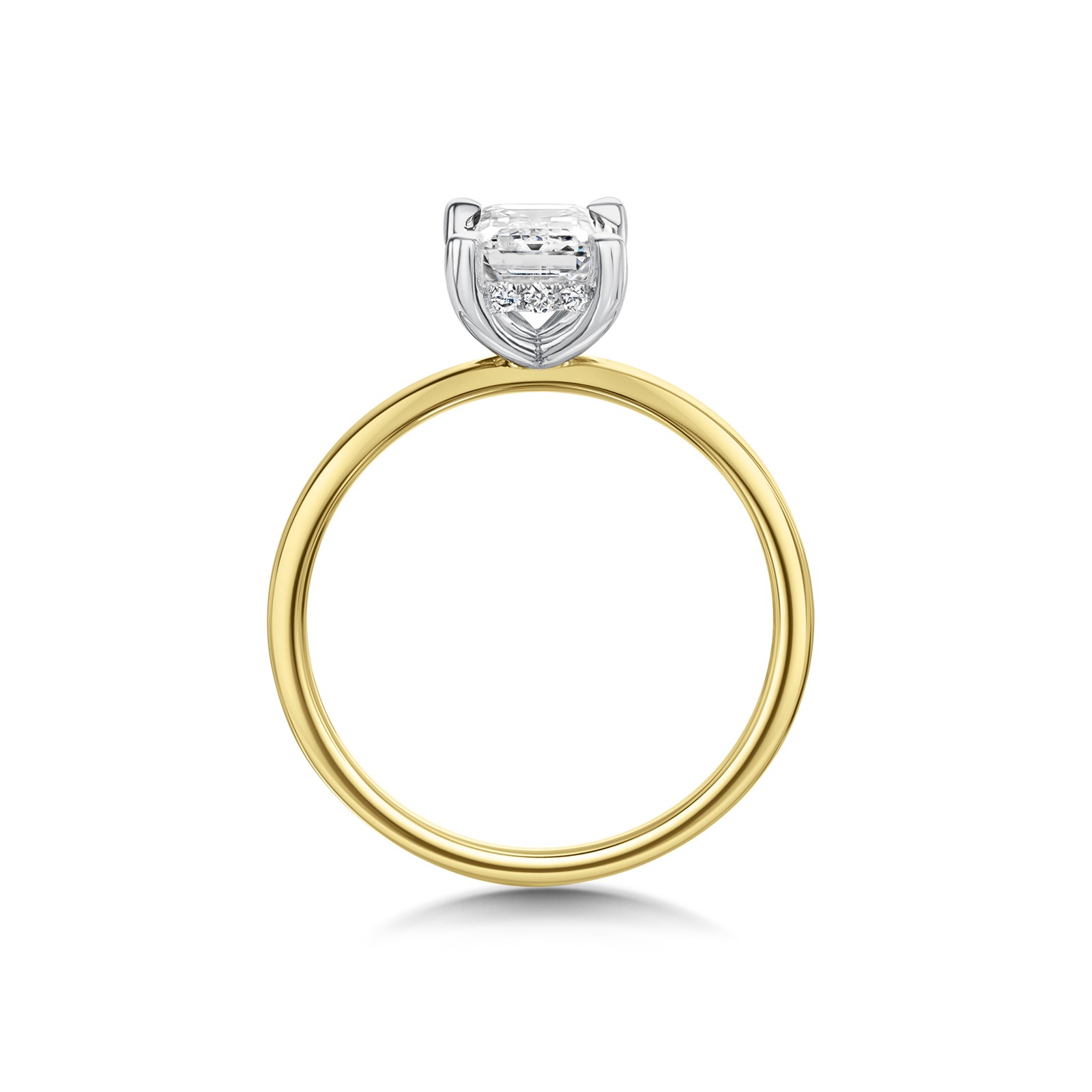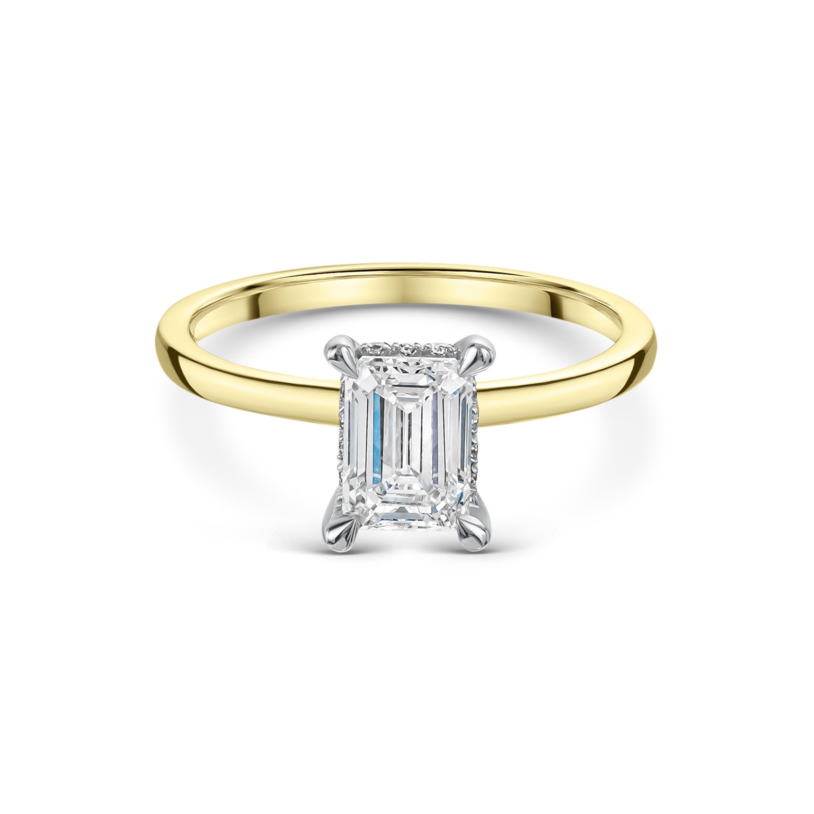 18ct Yellow Gold Lab Grown 1.00ct Emerald Cut Hidden Halo Solitaire Ring