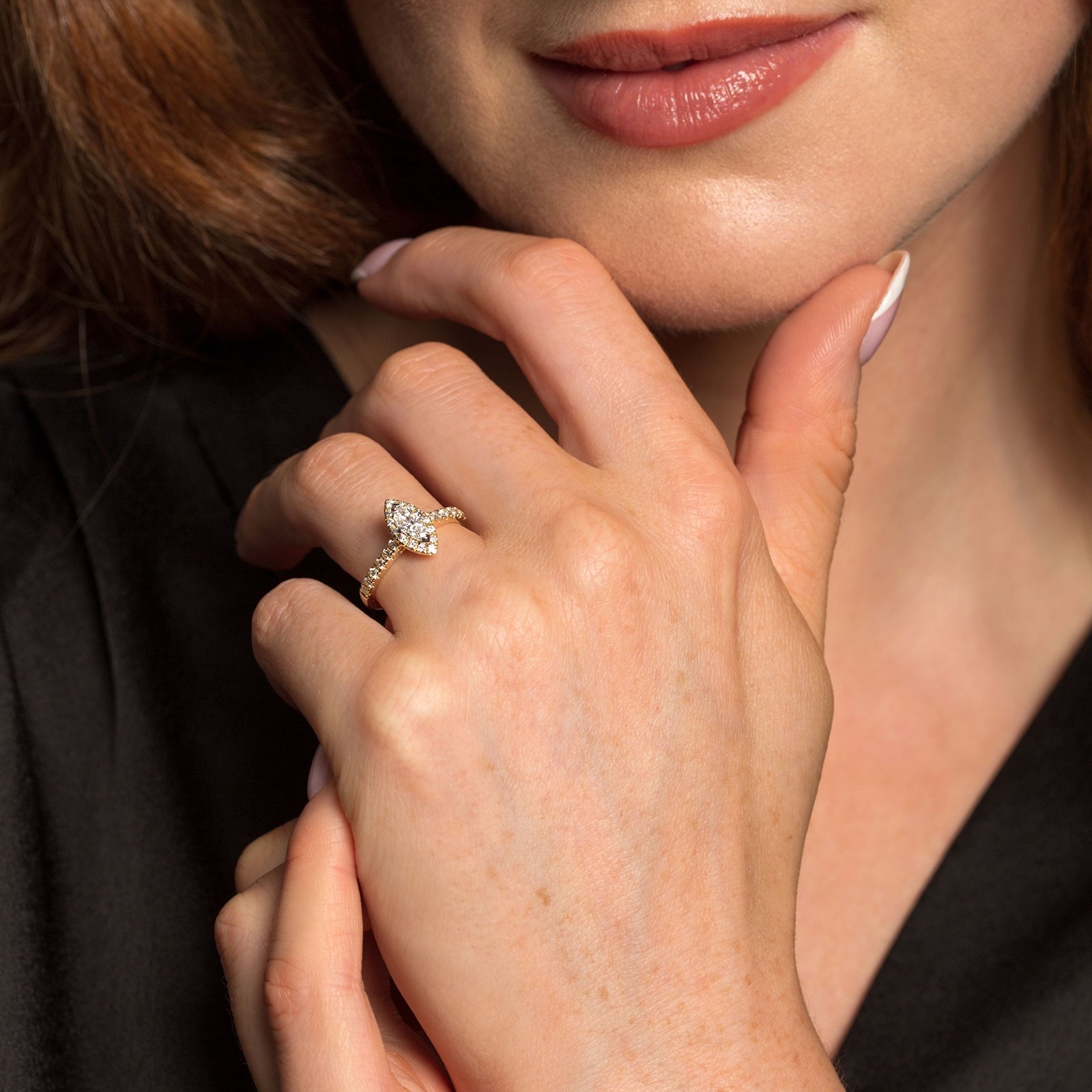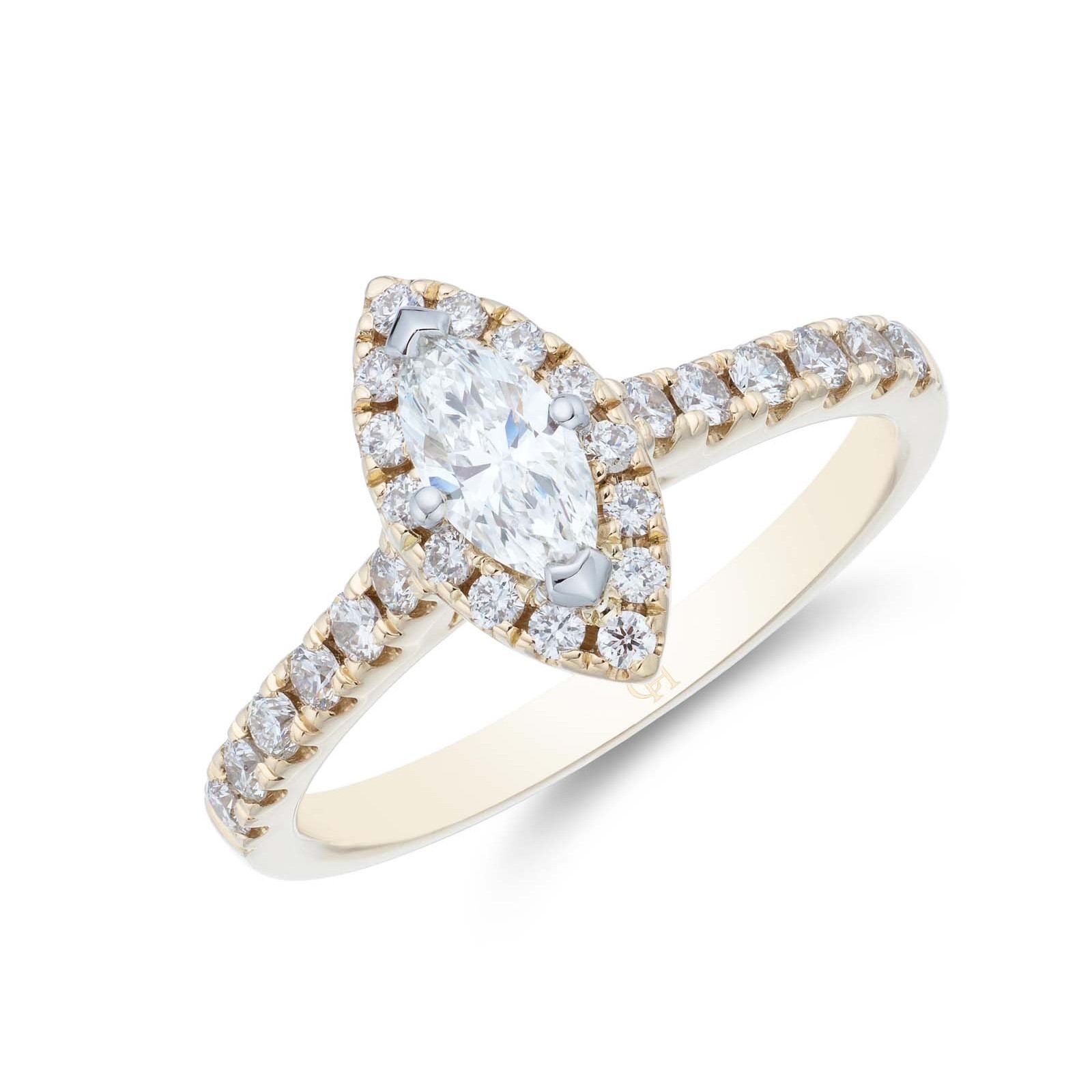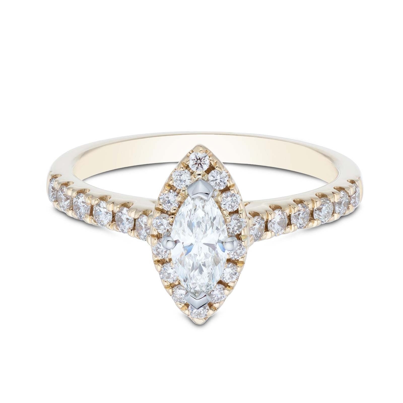 18ct Yellow Gold Marquise Cut 0.70ct Diamond Halo Solitaire Ring