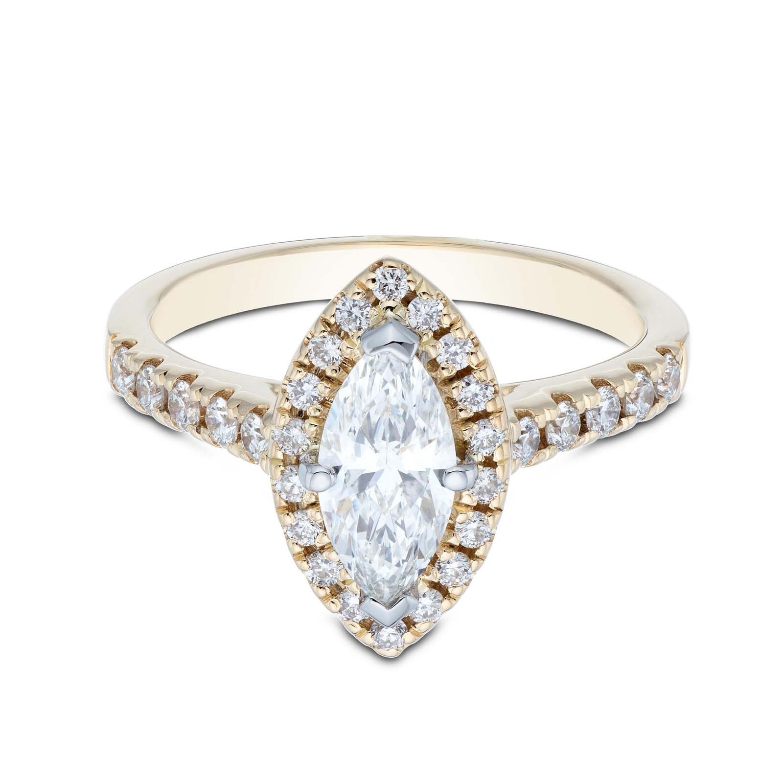 18ct Yellow Gold Marquise Cut 1.15ct Diamond Halo Solitaire Ring