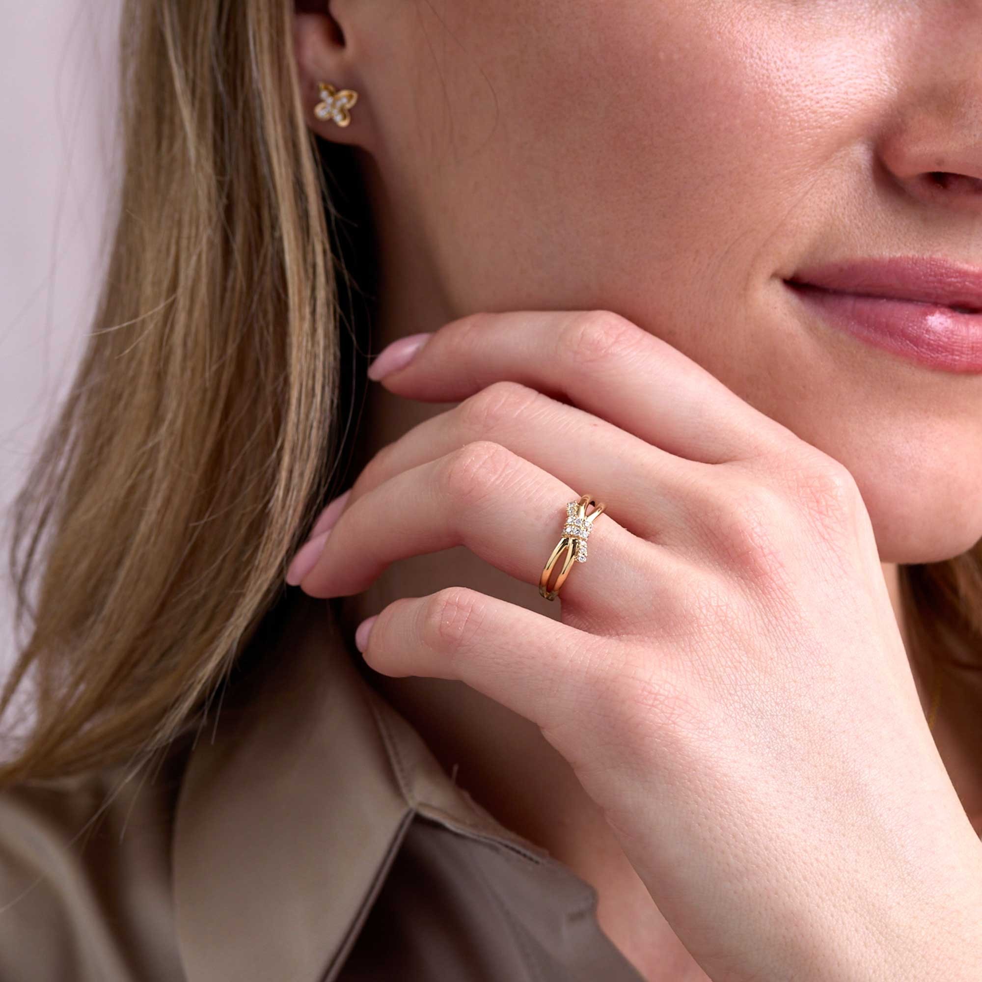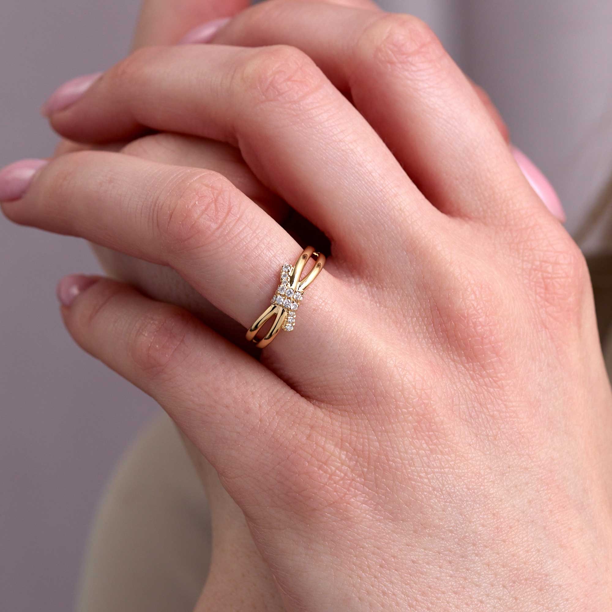 18ct Yellow Gold Round Brilliant 0.15ct Diamond Knot Fancy Band