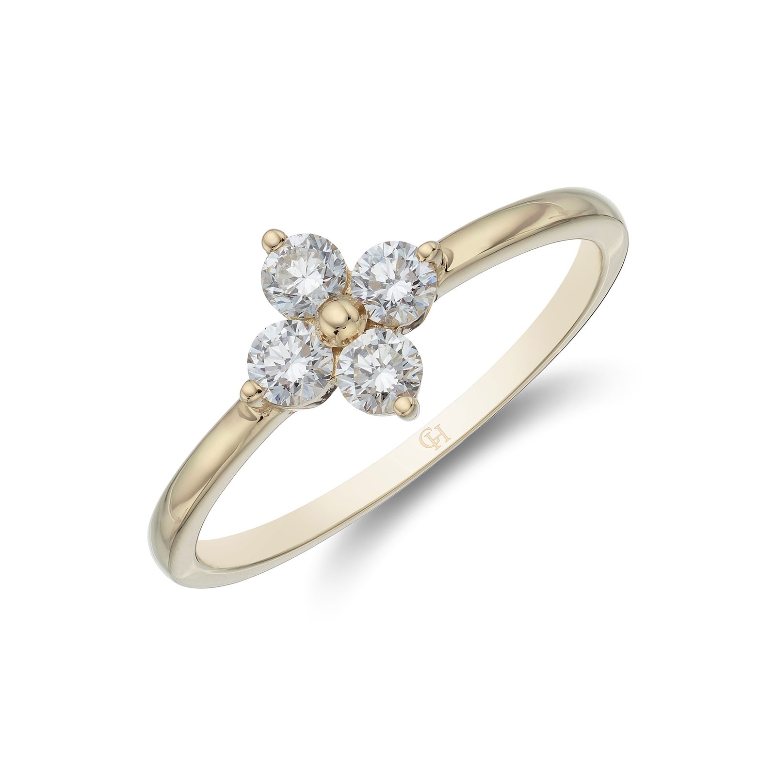 18ct Yellow Gold Round Brilliant 0.40ct Diamond Flower Cluster Ring