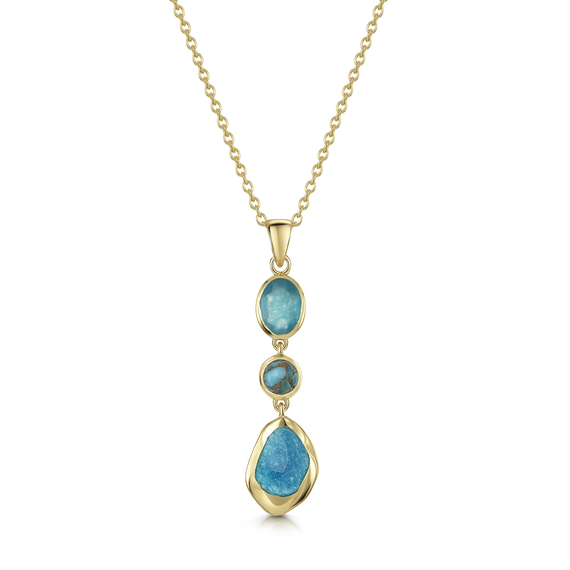 Introducing the 18ct Yellow Gold Vermeil Jade & Turquoise Pendant from Chisholm Hunter. This elegant necklace is designed for her, showcasing a stunning combination of jade and turquoise. The mixed cut stones add depth and character, making this piece a versatile addition to any jewellery collection.