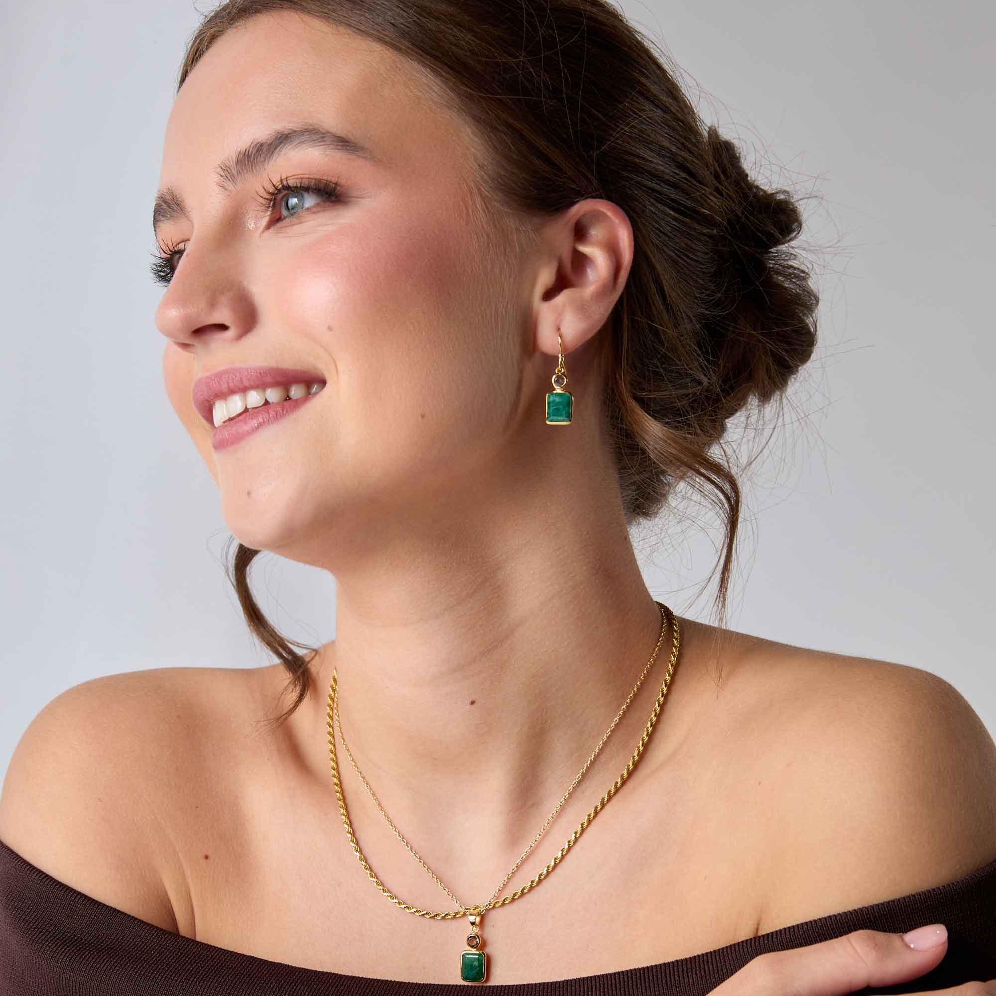 These 18ct Yellow Gold Vermeil Labradorite & Beryl Emerald Earrings by Chisholm Hunter are expertly crafted with a durable 3-micron plating layered over 925 sterling silver, offering a warm, durable finish and refined shine. The mixed cut facets create subtle flashes adding depth to any outfit.