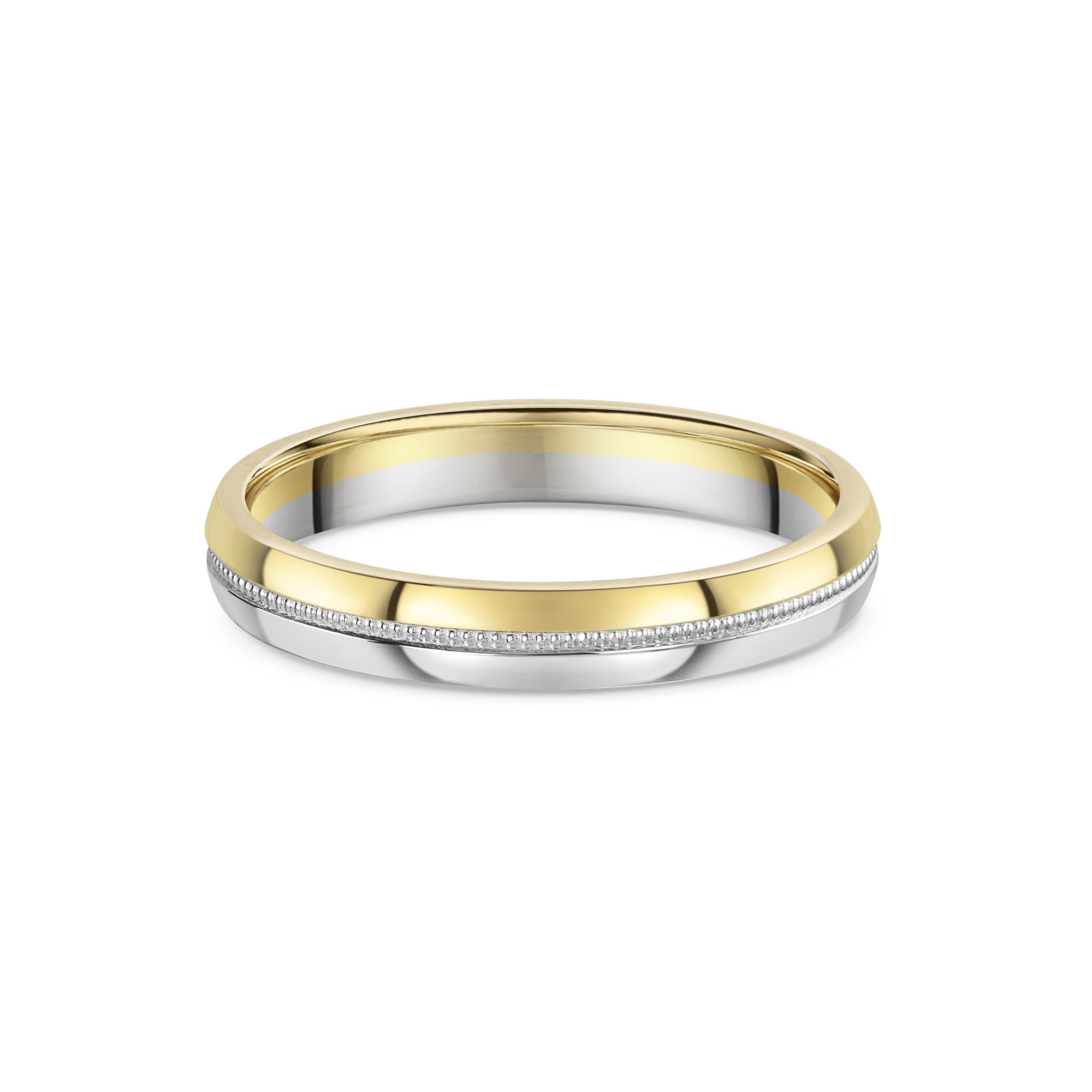9ct 2 Colour 3mm Ladies Bead Centre Wedding Ring