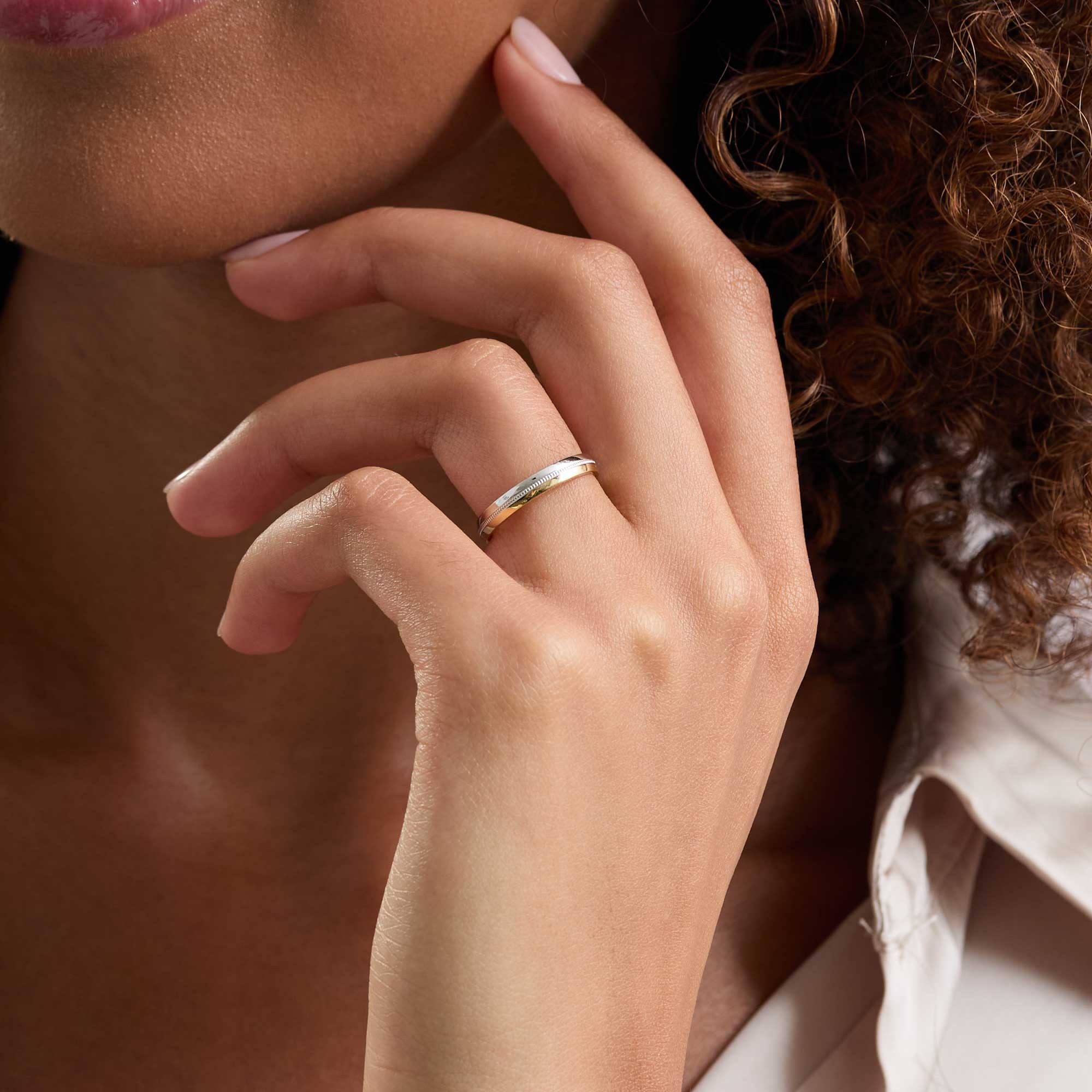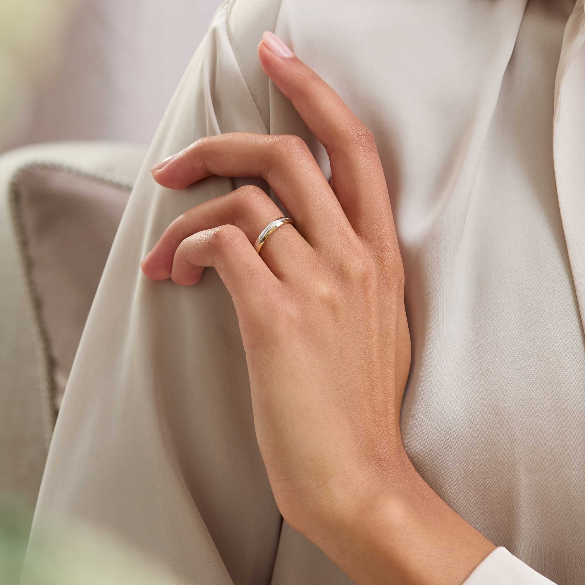 Designed with precision, the ring showcases a sleek 3mm width that complements any outfit. The two-tone gold adds a contemporary twist, making it suitable for wear with any jewellery. Each piece comes in Chisholm Hunter presentation packaging, ensuring it arrives in perfect condition.