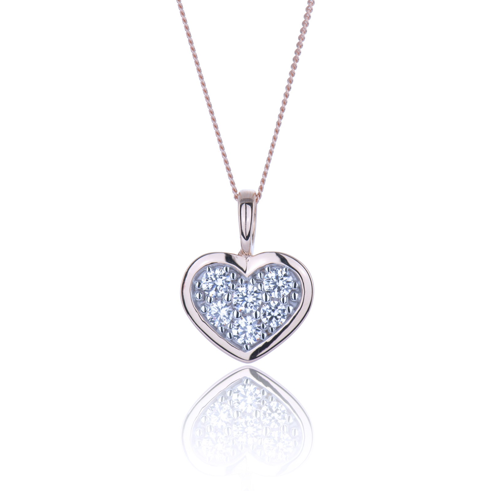 9ct Rose Gold Round Brilliant Cubic Zirconia Pave Heart Pendant.