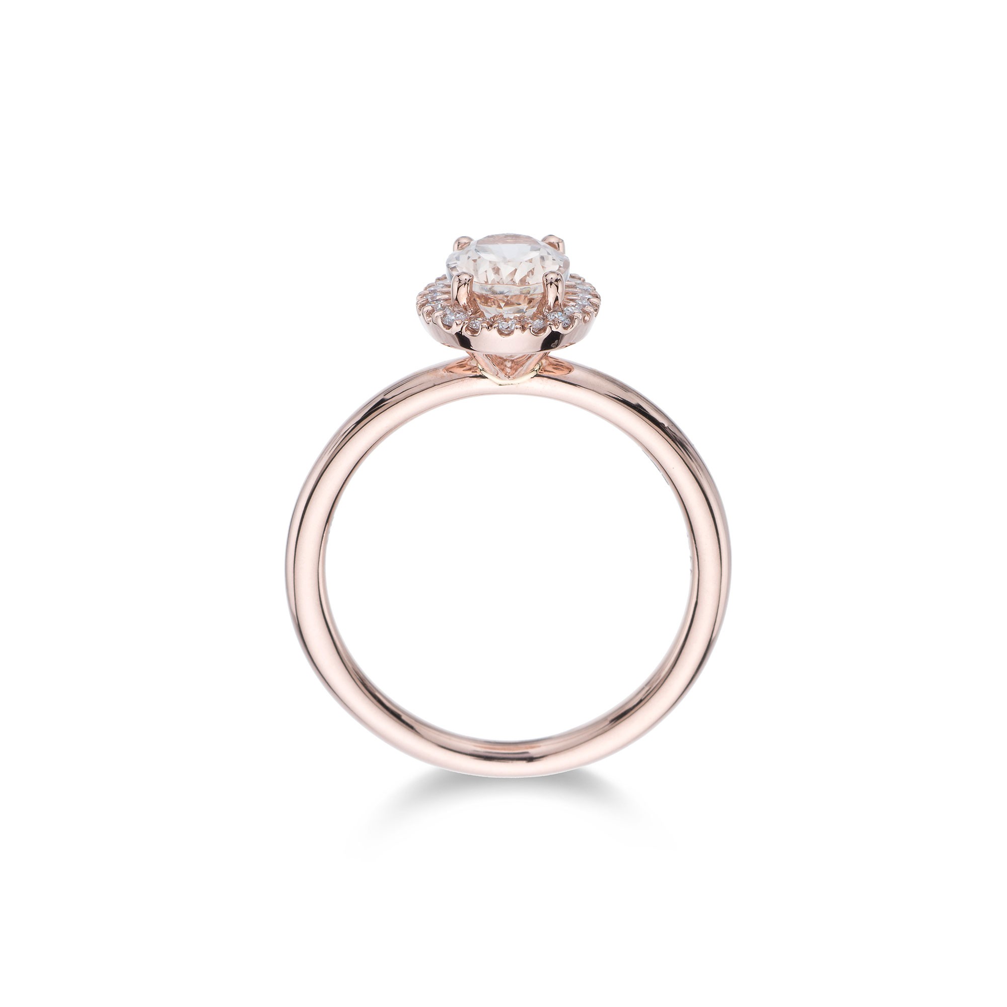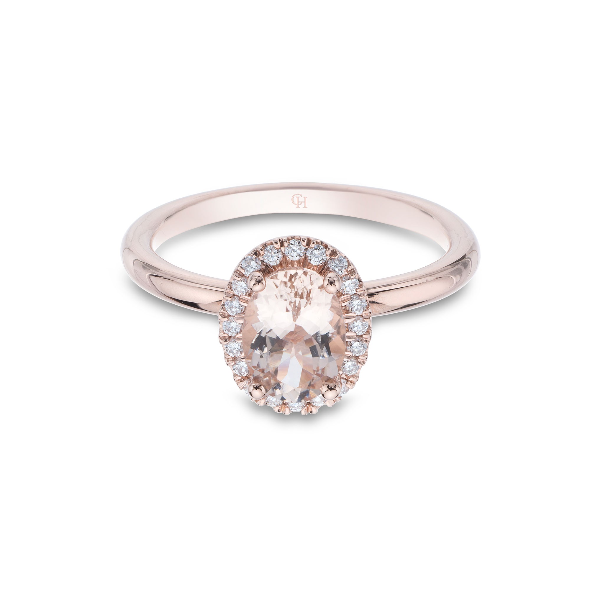 9ct Rose Gold Oval Cut Morganite 0.98ct Diamond Halo Ring