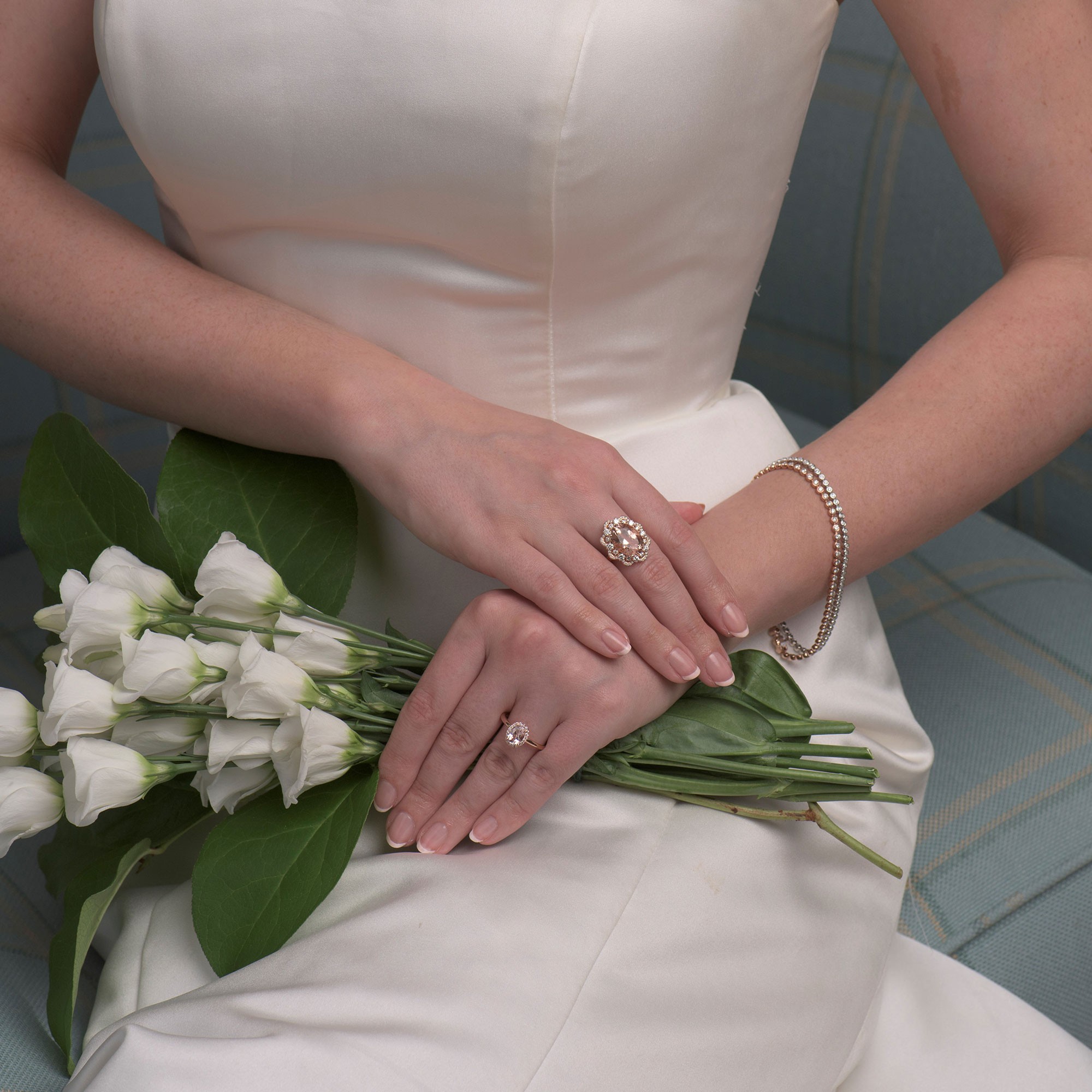 Make your engagement a moment to remember with this 9ct rose gold morganite and diamond ring. Sparkling with vintage glamour this ring features an oval cut morganite held in a 4 claw setiing encompassed by a cluster of glittering round brilliant diamonds with a total diamond weight of 0.10ct. A beautifully unique piece to present to your loved one. Diamond Information: Cut- Oval Cut & Round Brilliant, Colour- G-H, Clarity- SI2, Carat- 0.10ct.