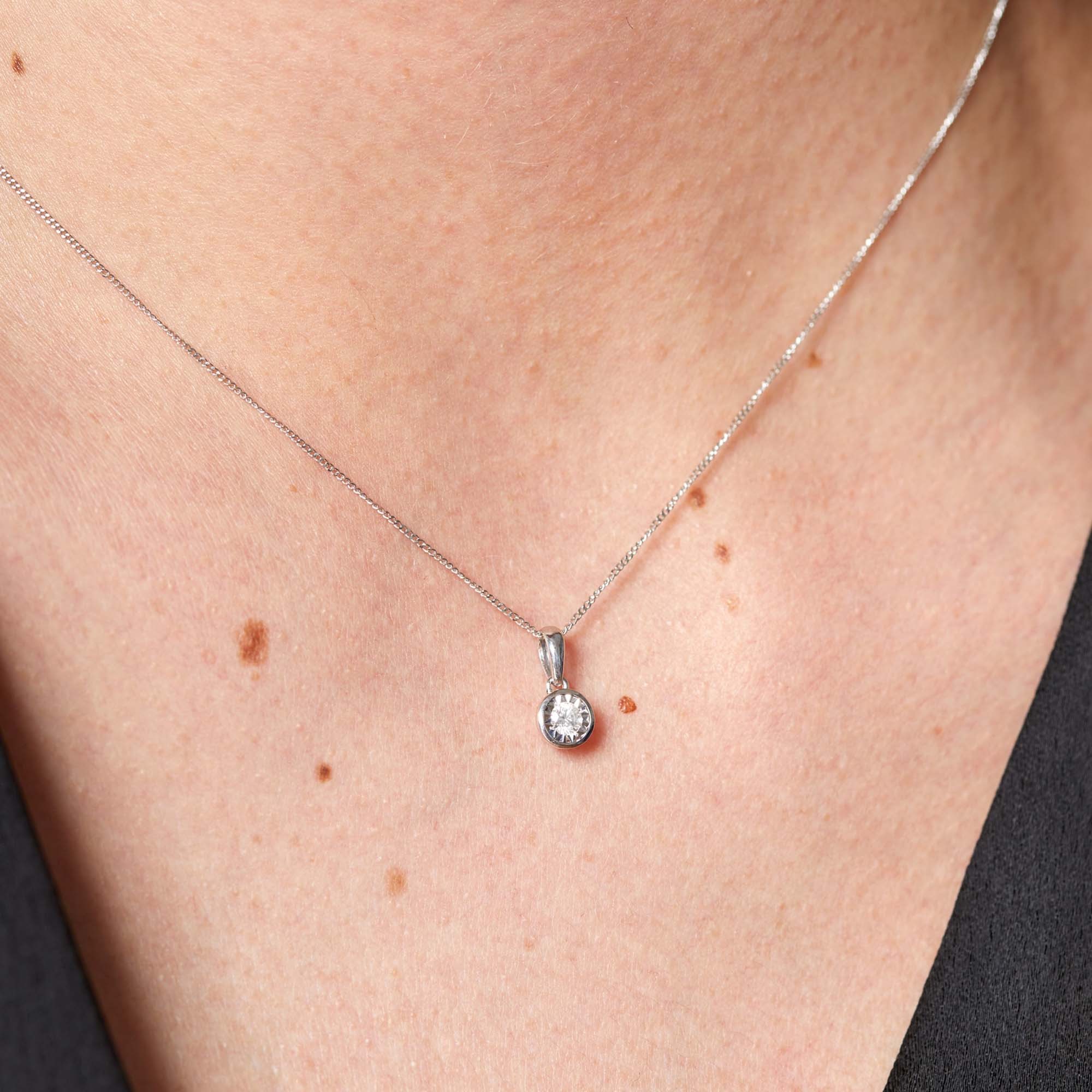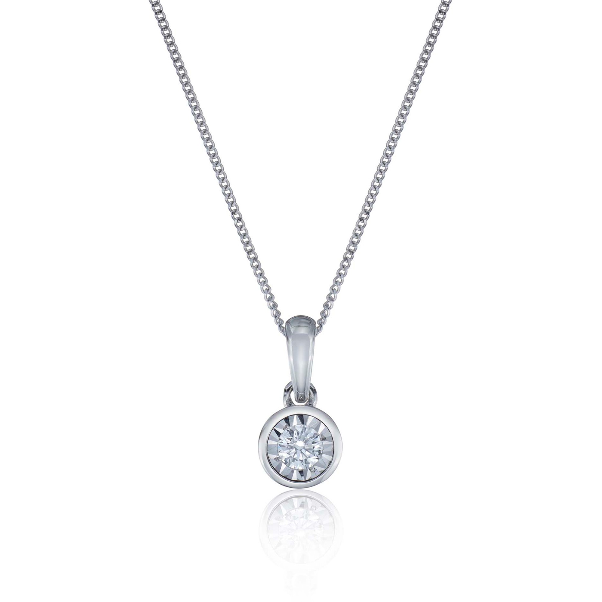 9ct White Gold Round Brilliant 0.10ct Diamond Bezel Set Pendant