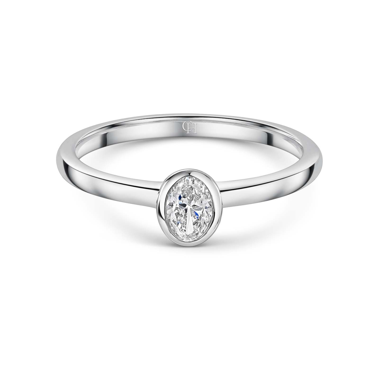 This white gold oval cut 0.50ct diamond solitaire ring will be admired by all on the hand of your future fiancé. The sparkle from the stunning oval cut diamond is intensified by the elegant white gold band.