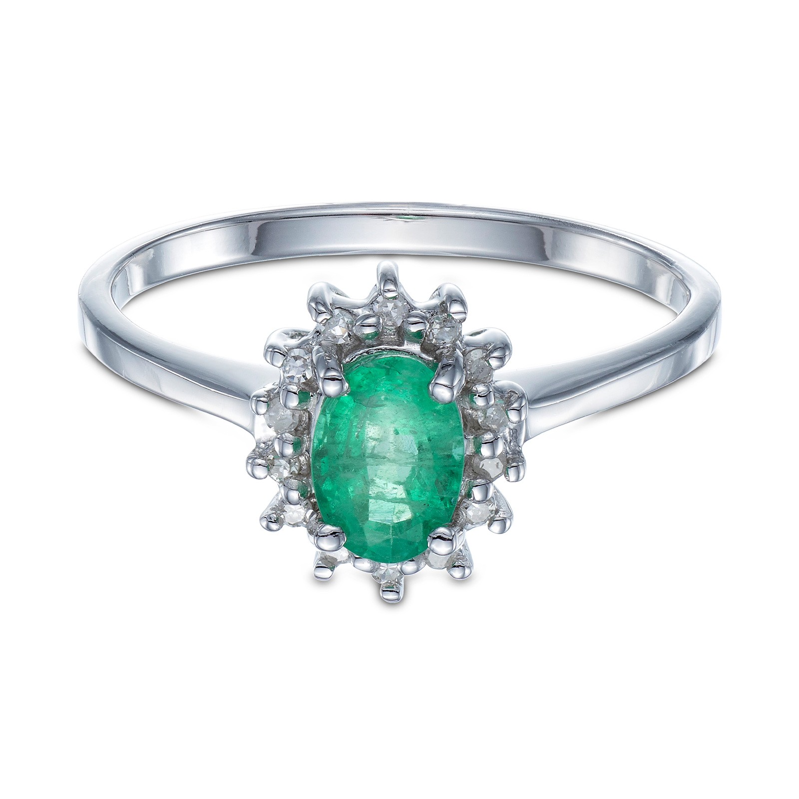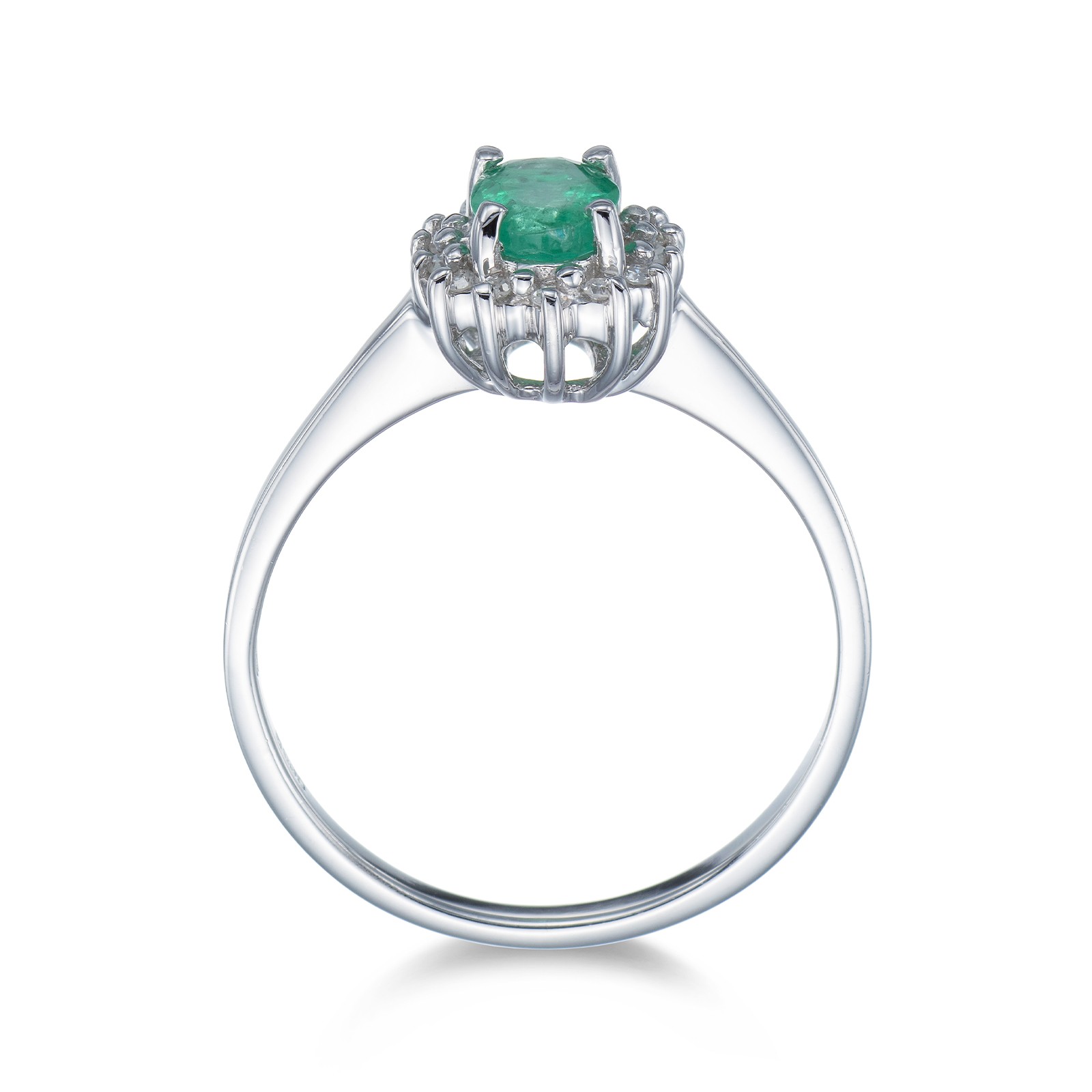 9ct White Gold 0.50ct Oval Emerald and 0.55ct Diamond Cluster Ring