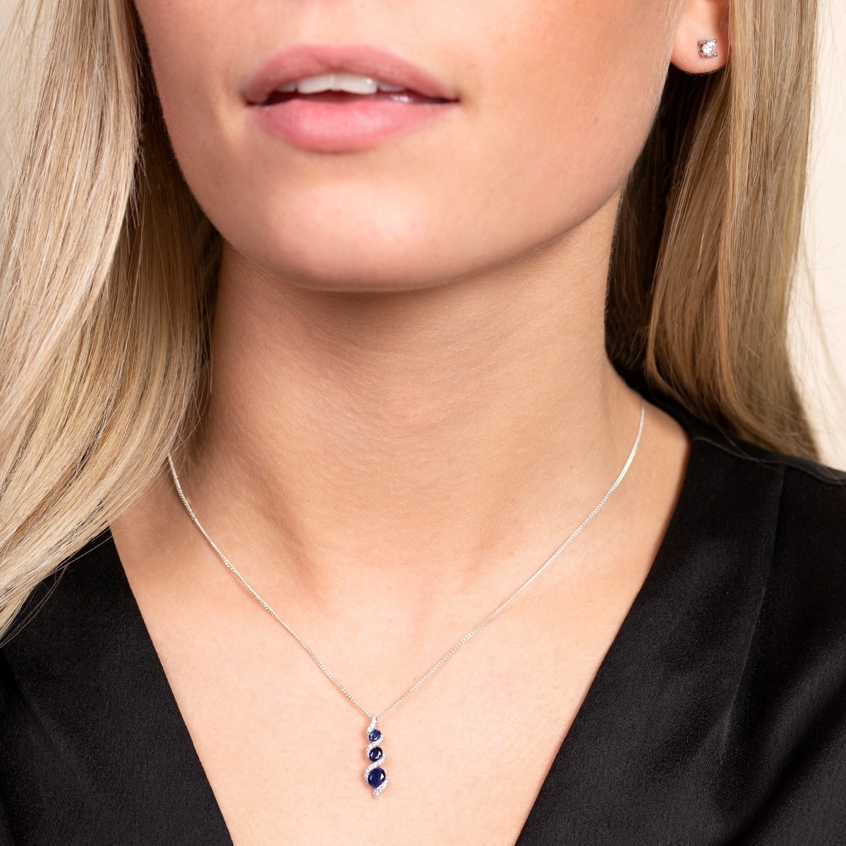 Fall in love with this 9ct white gold pendant. Featuring a 0.83ct oval sapphire and 0.11ct of diamonds set in a fancy 3 stone twist setting - this piece is perfectly unique. This beautifully crafted pendant is sure to become a welcomed addition to your jewellery collection.