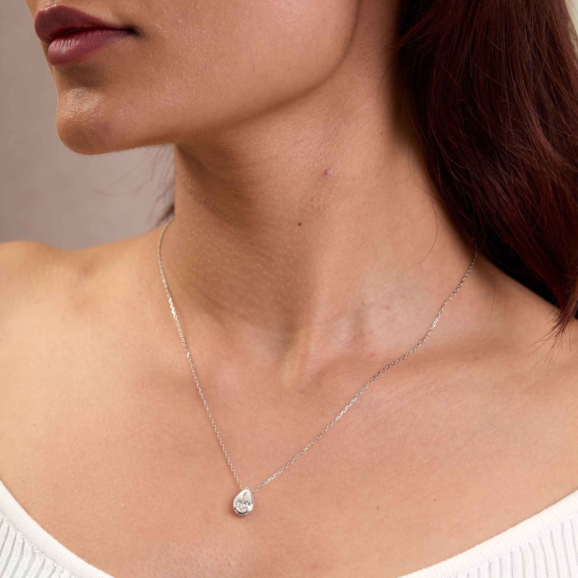 9ct White Gold 1.00ct Lab Grown Diamond Rub Over Pear Shape Pendant