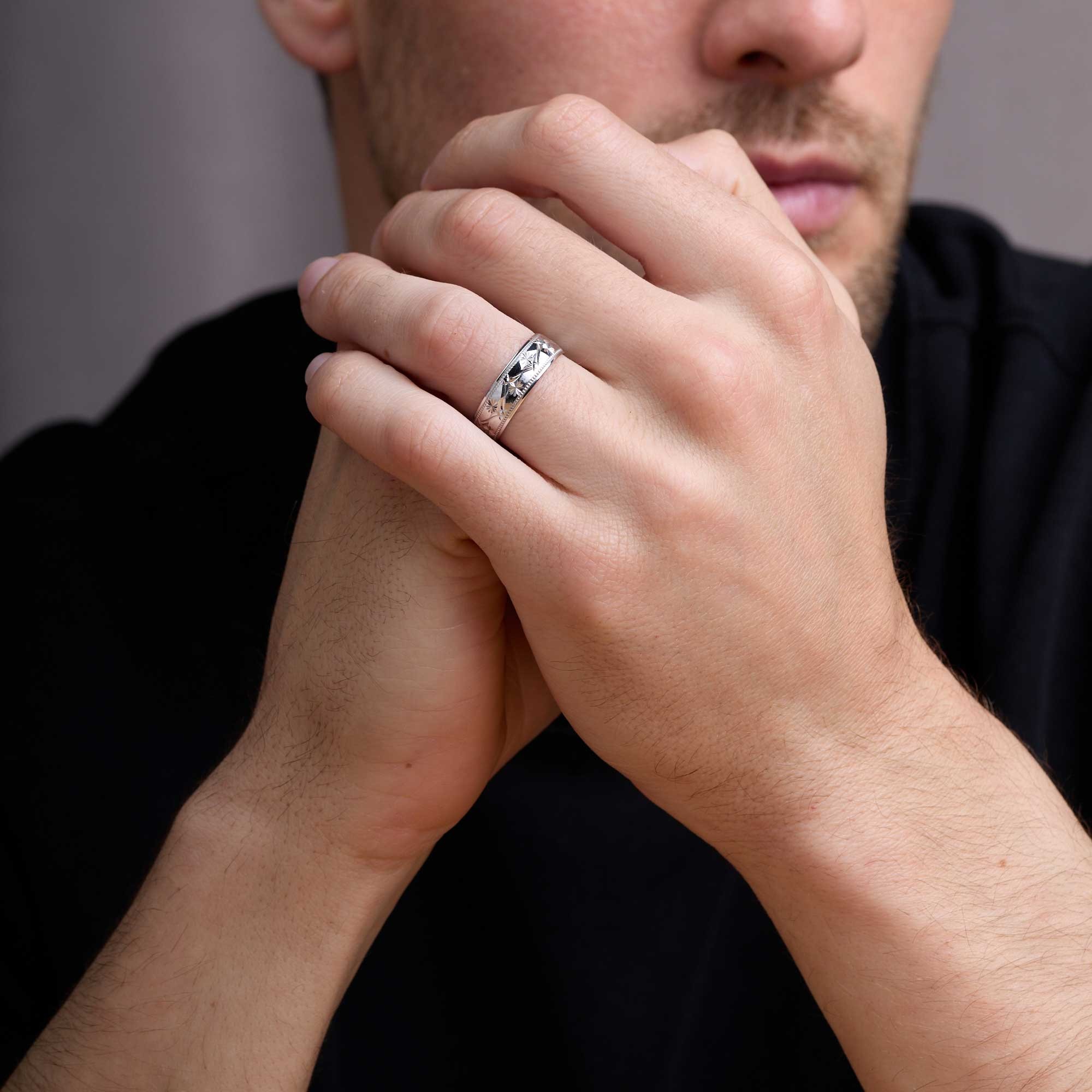 The diamond cut design reflects light beautifully, adding a touch of brilliance to this classic piece. This ring is designed for strength and durability, making it an ideal symbol of commitment.