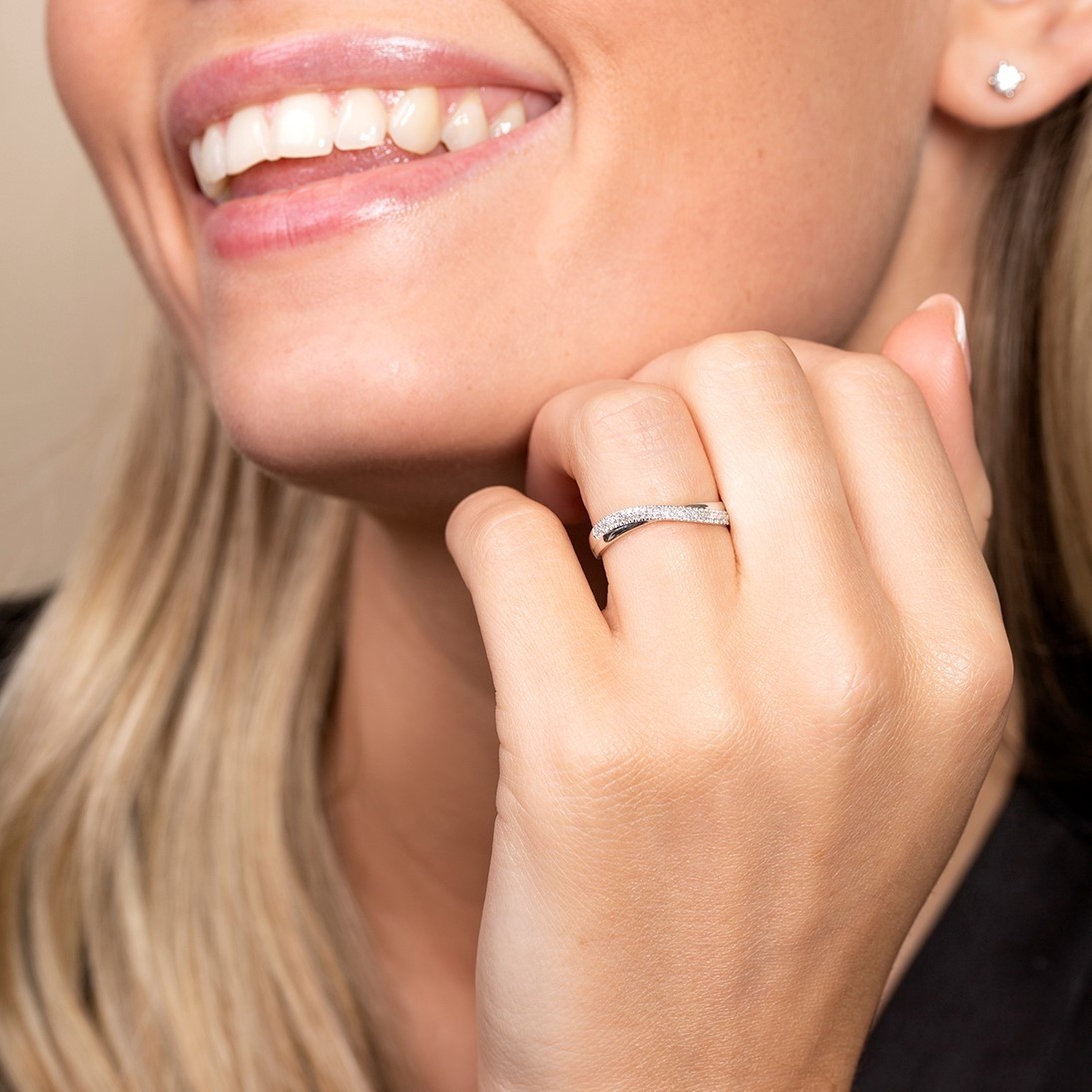 For a true symbol of your love, commitment and passion, choose this 9ct white gold diamond ring for one that is sure to have your loved one falling head over heels in love with. An unique design with a total diamond carat weight of 0.15; a white gold band set with round brilliant cut diamonds, is delicately twists around a 2nd ppolished white gold band. A beautiful gift, whether to celebrate an anniversary, mark an important milestone or simply say "I love you".