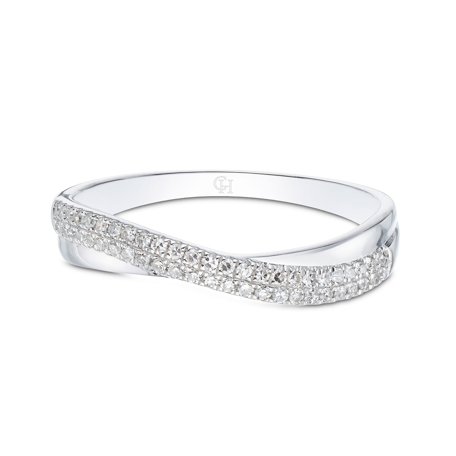 9ct White Gold Brilliant Cut 0.14ct Diamond Twist Fancy Band
