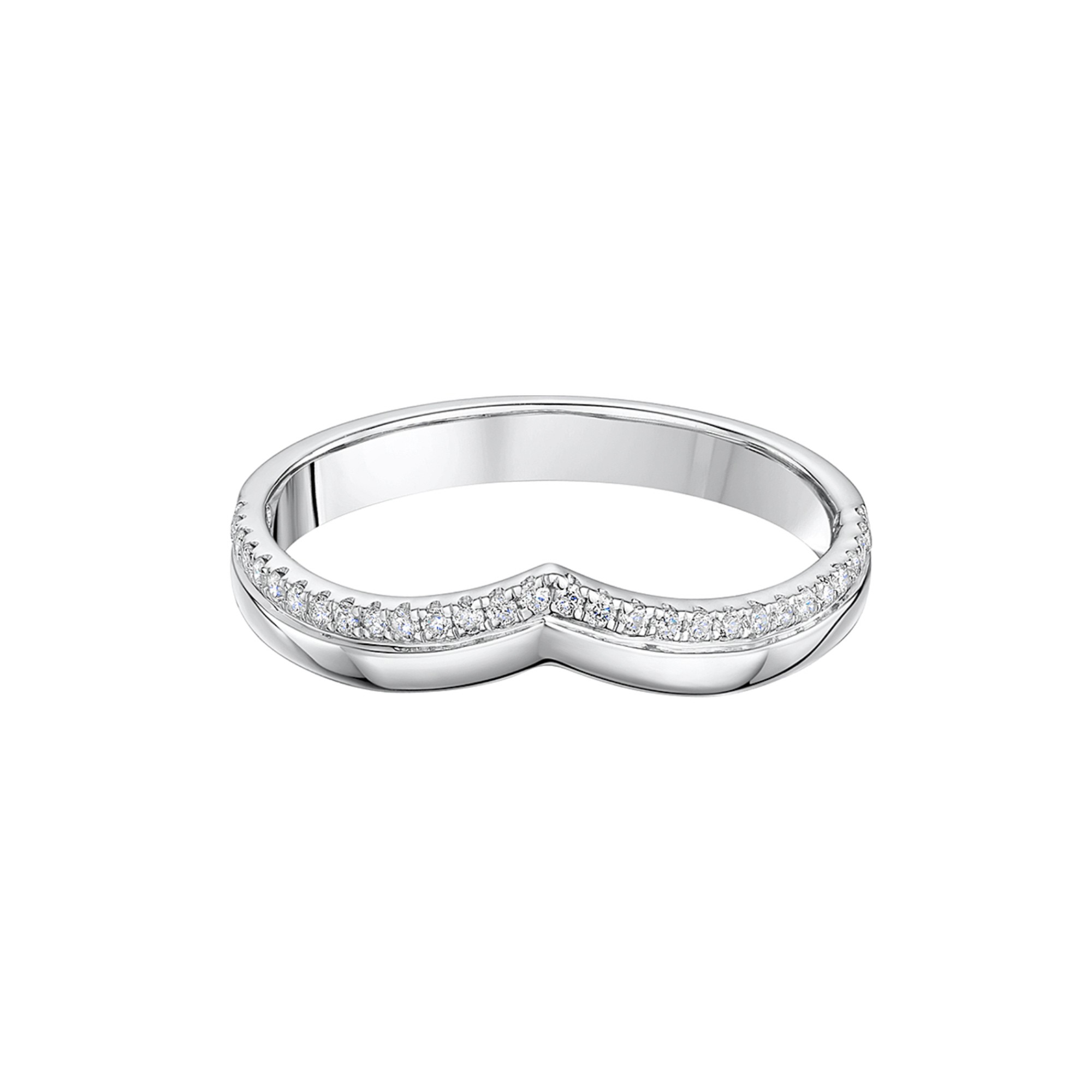 A stunningly elegant design, this 9ct white gold half diamond eternity wedding ring is a wonderful way of showcasing your eternal commitment and love. A glittering row of round brilliant cut diamonds, with a total carat weight of 0.15, perfectly contrasts with the lustre of a polished white gold band alongside, in a dreamy wishbone design. Diamond Information: Cut- Round Brilliant, Colour - G-H, Clarity - SI1, Carat Weight - 0.15ct.