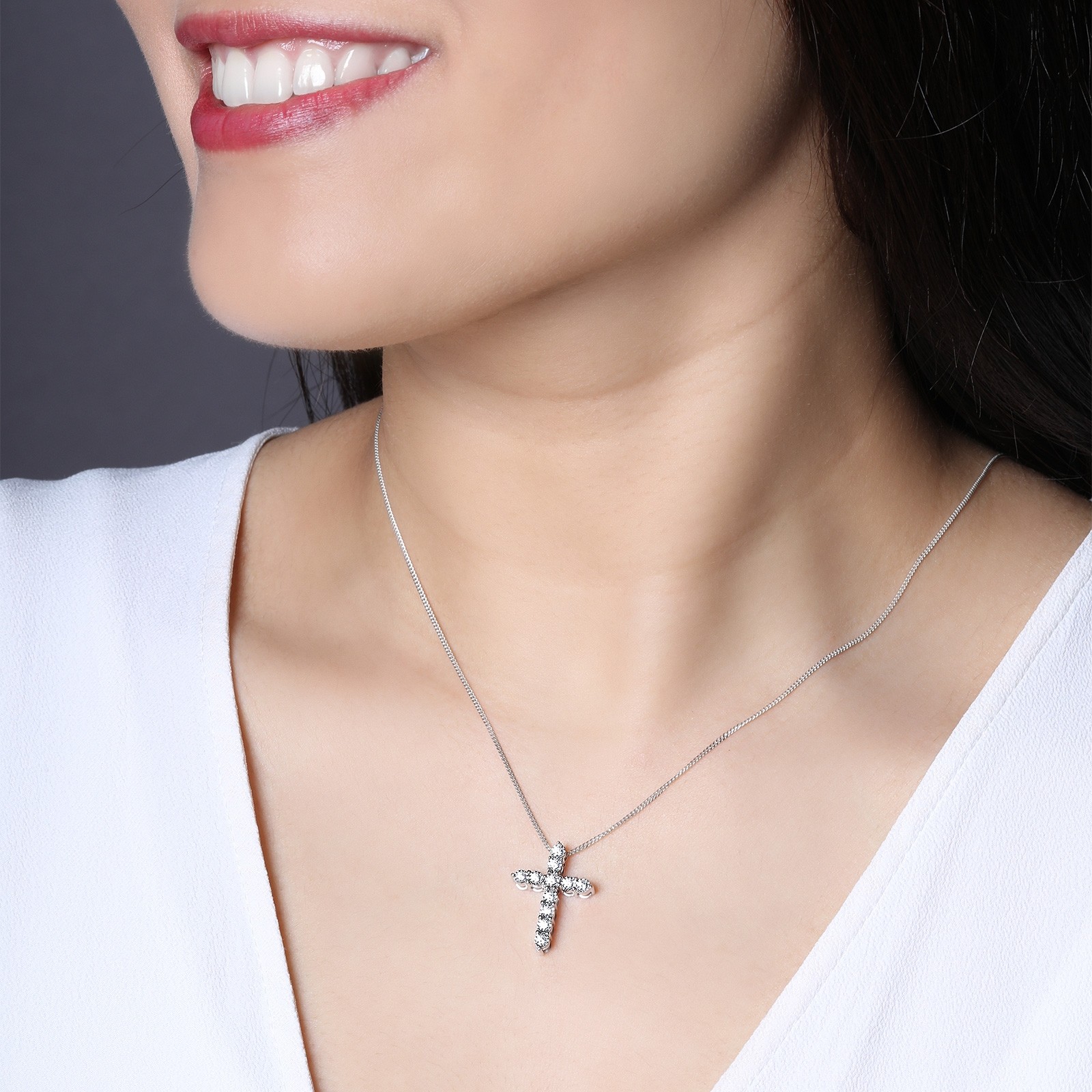 9ct White Gold Brilliant Cut 0.25ct Diamond Cross Pendant