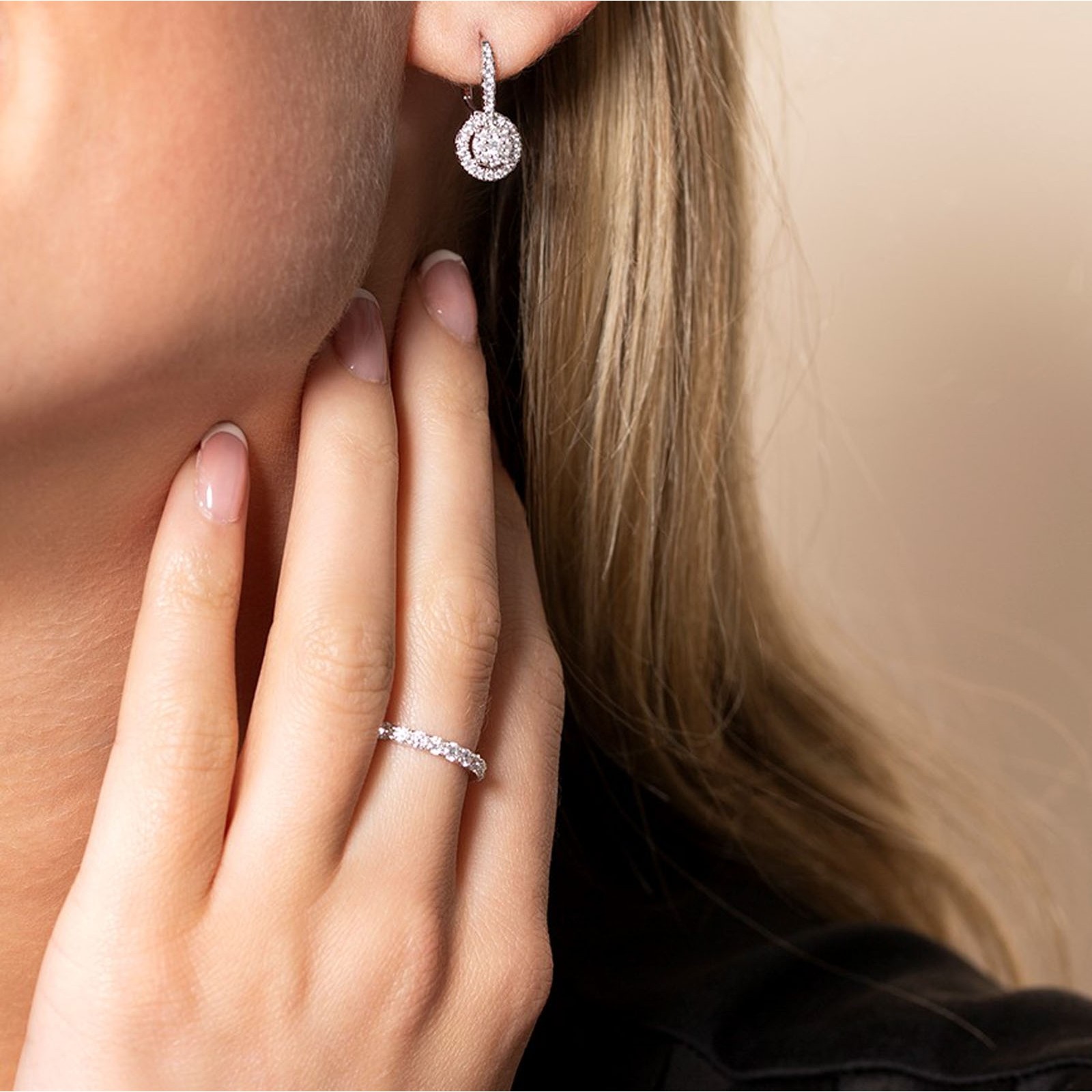 Add some ultimate dazzling luxury to your look with these breathtaking 9ct white gold diamond earrings. Truly elegant, these earrings are designed with a 0.62 total diamond carat weight. A drop design, round brilliant cut diamonds create a cluster with further sparkle added by a halo of smaller again twinkling diamonds. A timeless and welcome addition to any jewellery collection; for yourself or someone special.