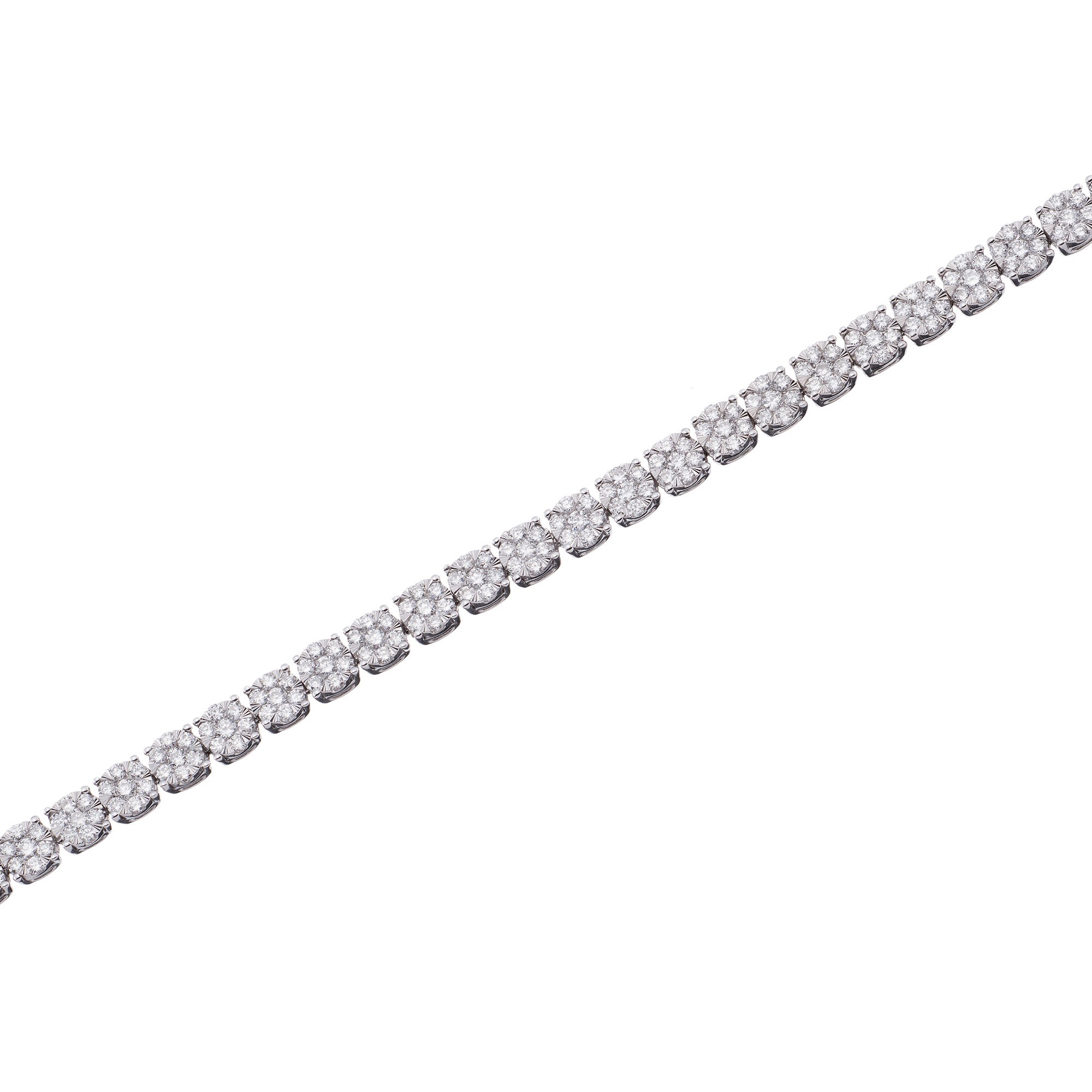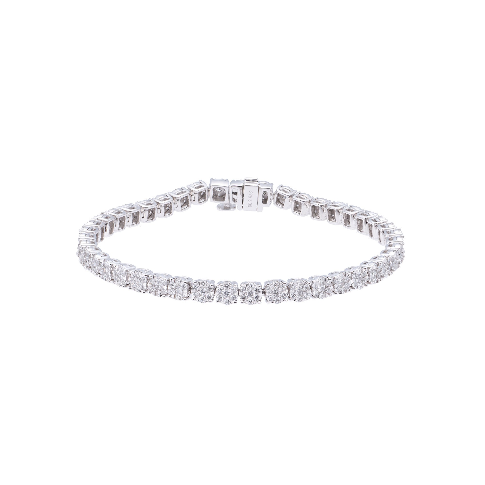 A beautifully elegant design, this 9ct white gold diamond tennis bracelet is the perfect piece for dressing up any special occasion looks. This classic piece features clusters of 3.00ct round brilliant cut diamonds that create the most stunning sparkle. Thanks to its timeless sparkle, this diamond tennis bracelet will never run out of style.