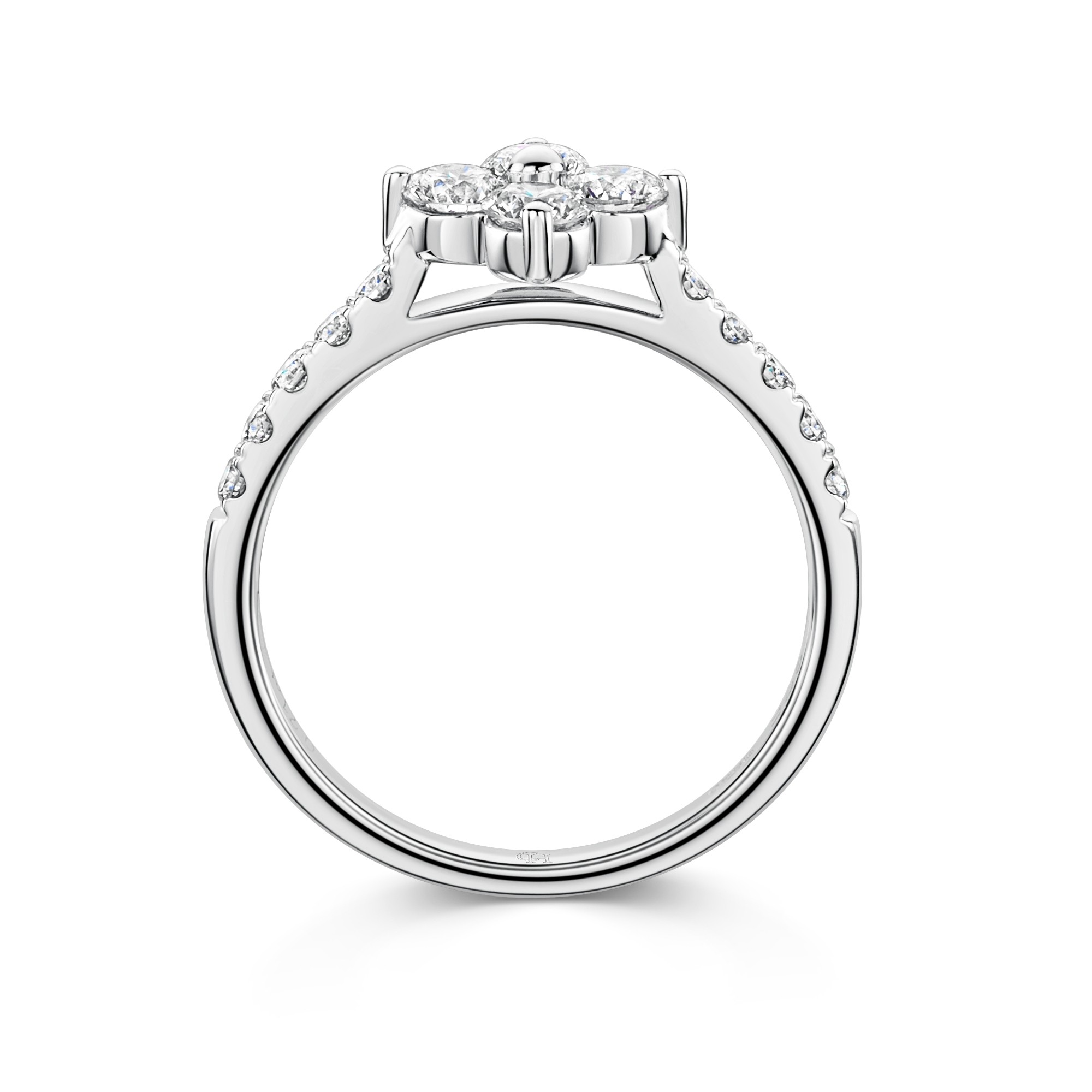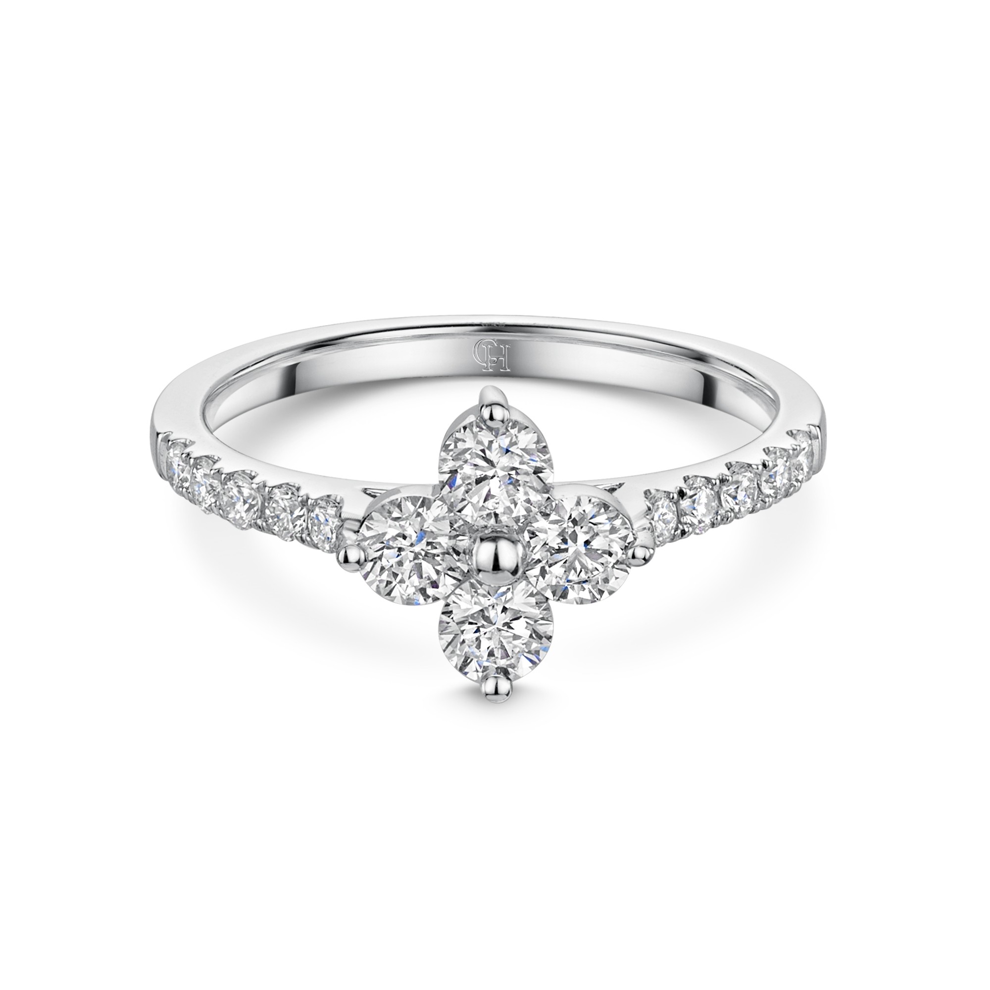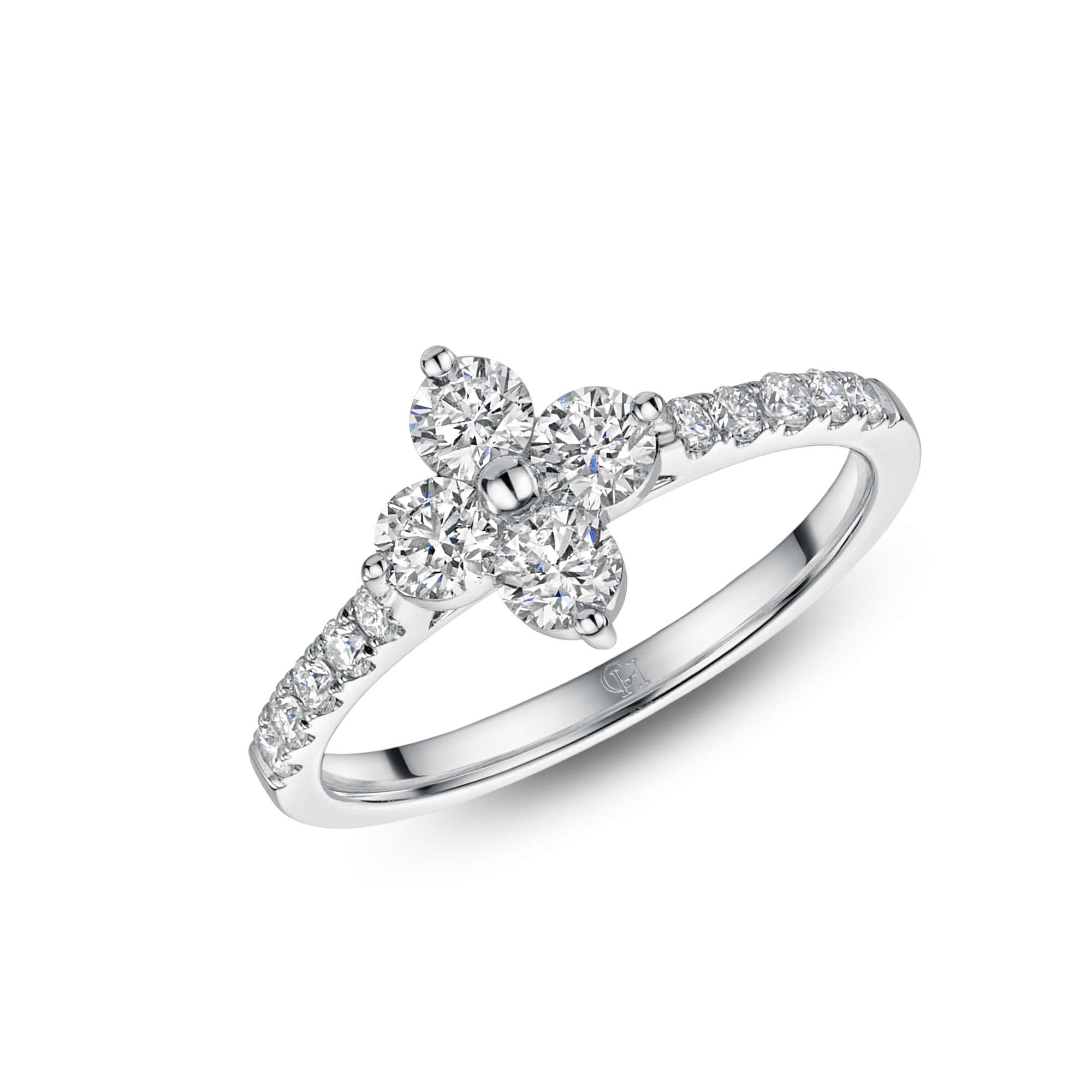 A truly feminine design, this 9ct White Gold Brilliant Cut Diamond 0.73ct Cluster Ring, is the perfect way to add a little sparkle to your look. With round brilliant cut diamonds beautifully set in a pretty flower petal formation, this stunning white gold ring is finished with diamond shoulders for added sparkle. Pair with the matching hoop earrings and pendant for a stunning set or stack with other styles from the Chisholm Hunter collection.