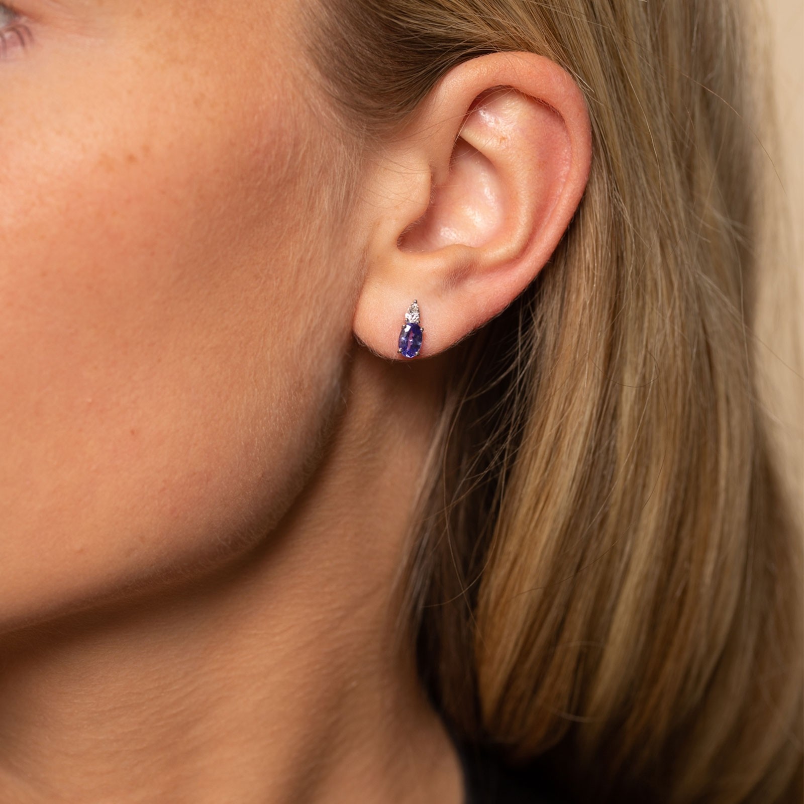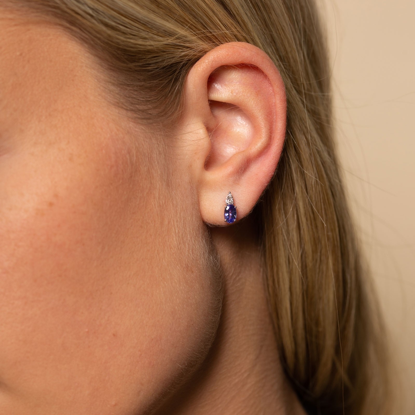 9ct White Gold Diamond 0.10ct and Tanzanite Earrings
